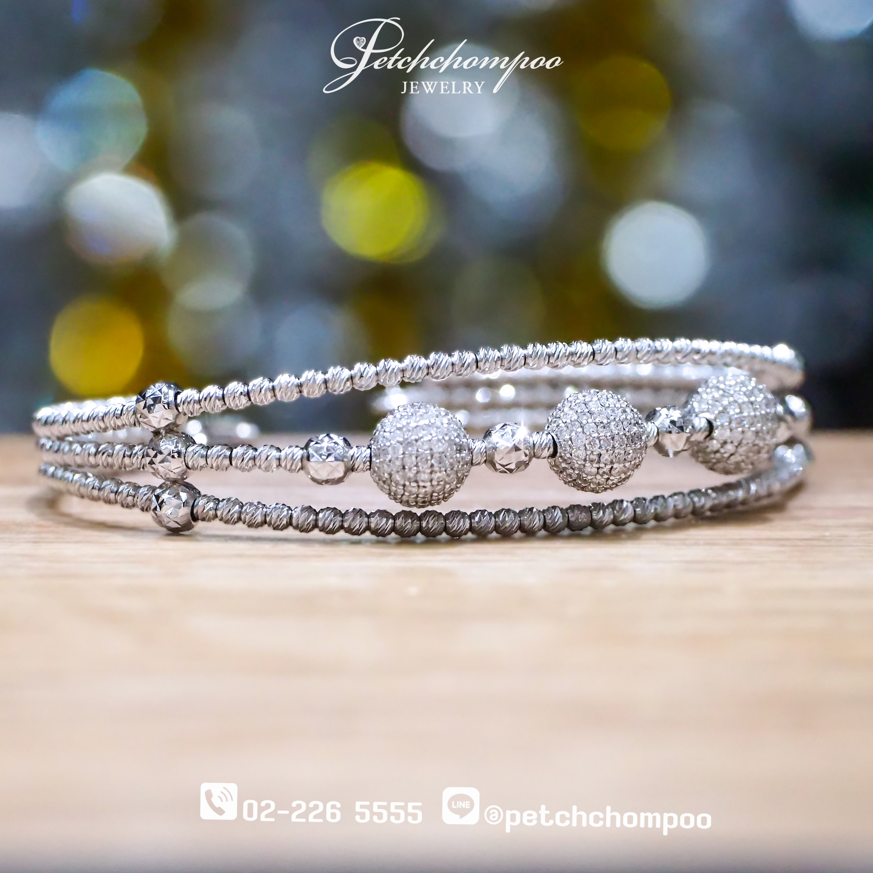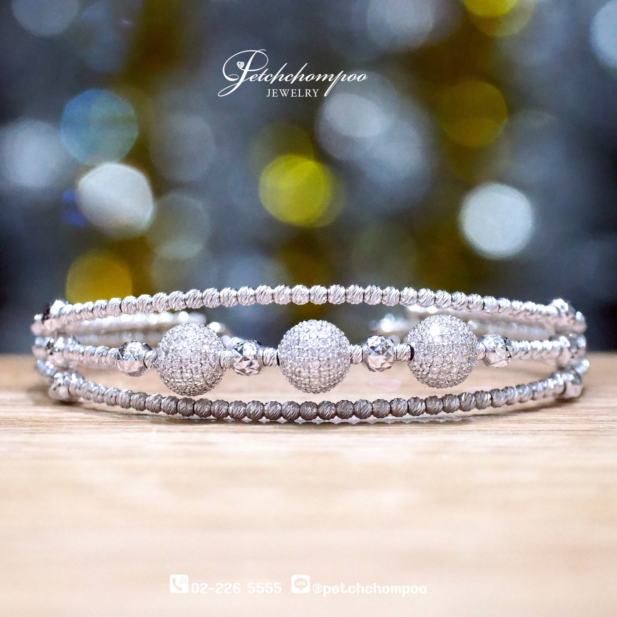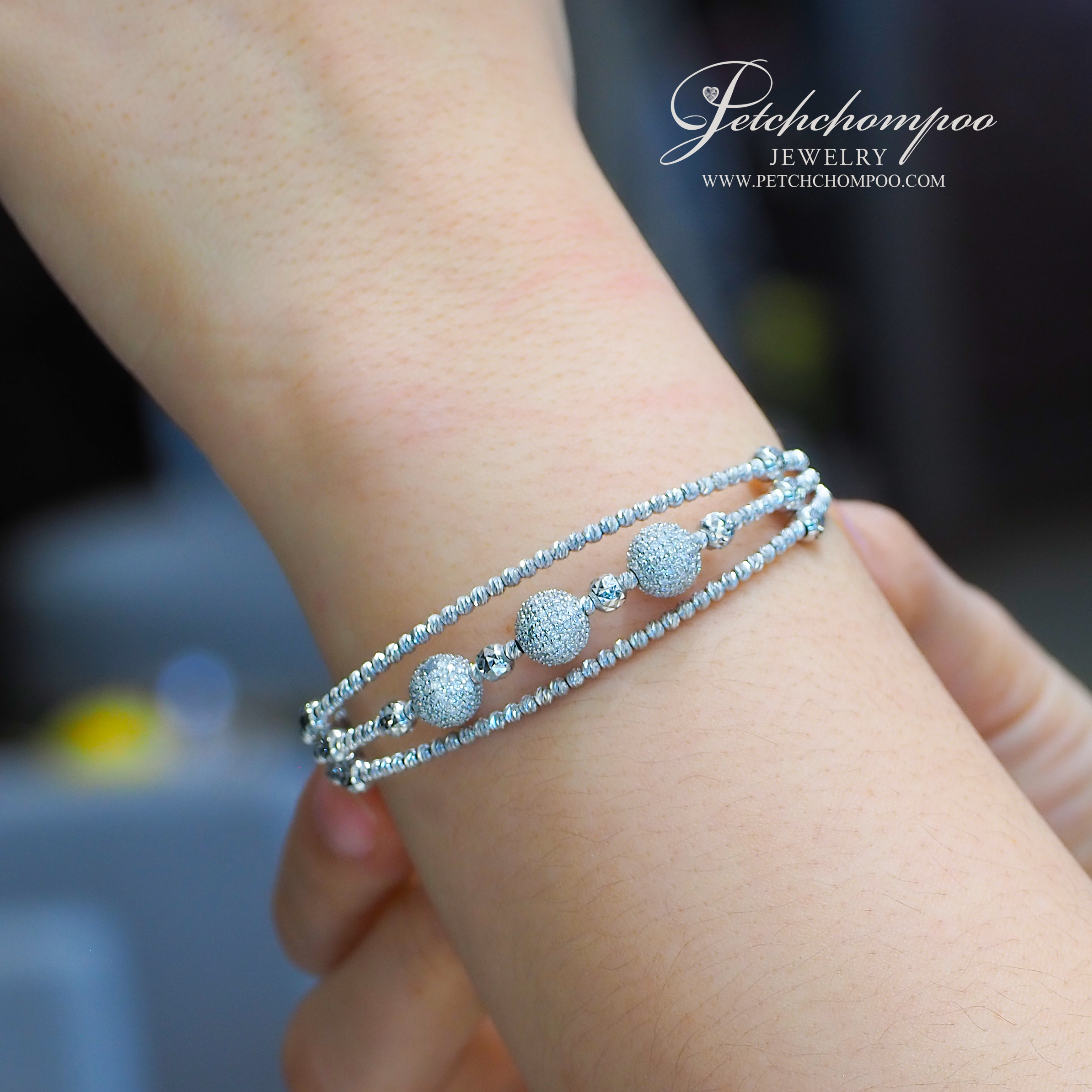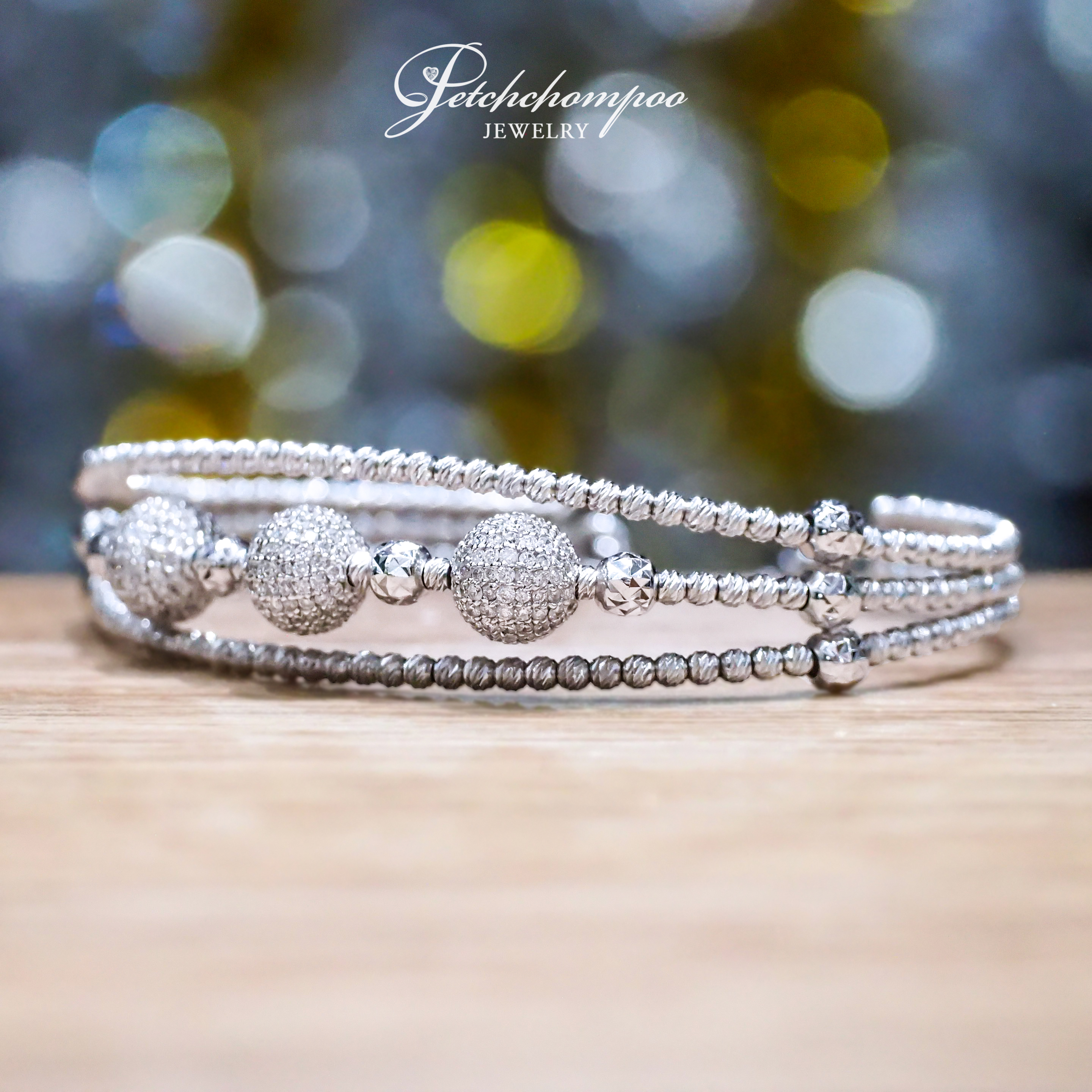 • 3-row flexible design with diamond spheres and polished beadwork