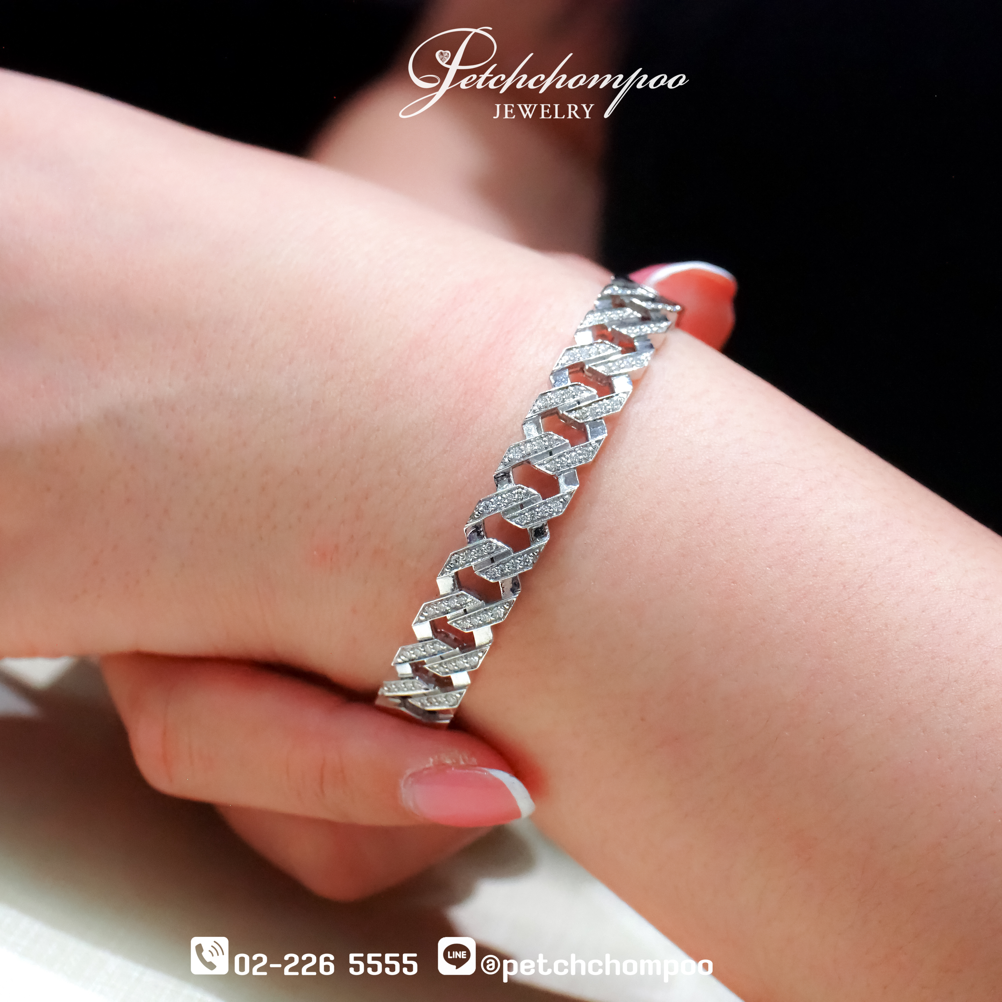 The Geometric Luxe™ bracelet is crafted in a striking modern geometric pattern, encrusted with 100 natural diamonds totaling 1.86 carats. The strong, clean lines are meticulously set on 18K white gold (22.14 grams), blending structured elegance with a contemporary twist → A statement piece for both men and women who appreciate design that defies convention.