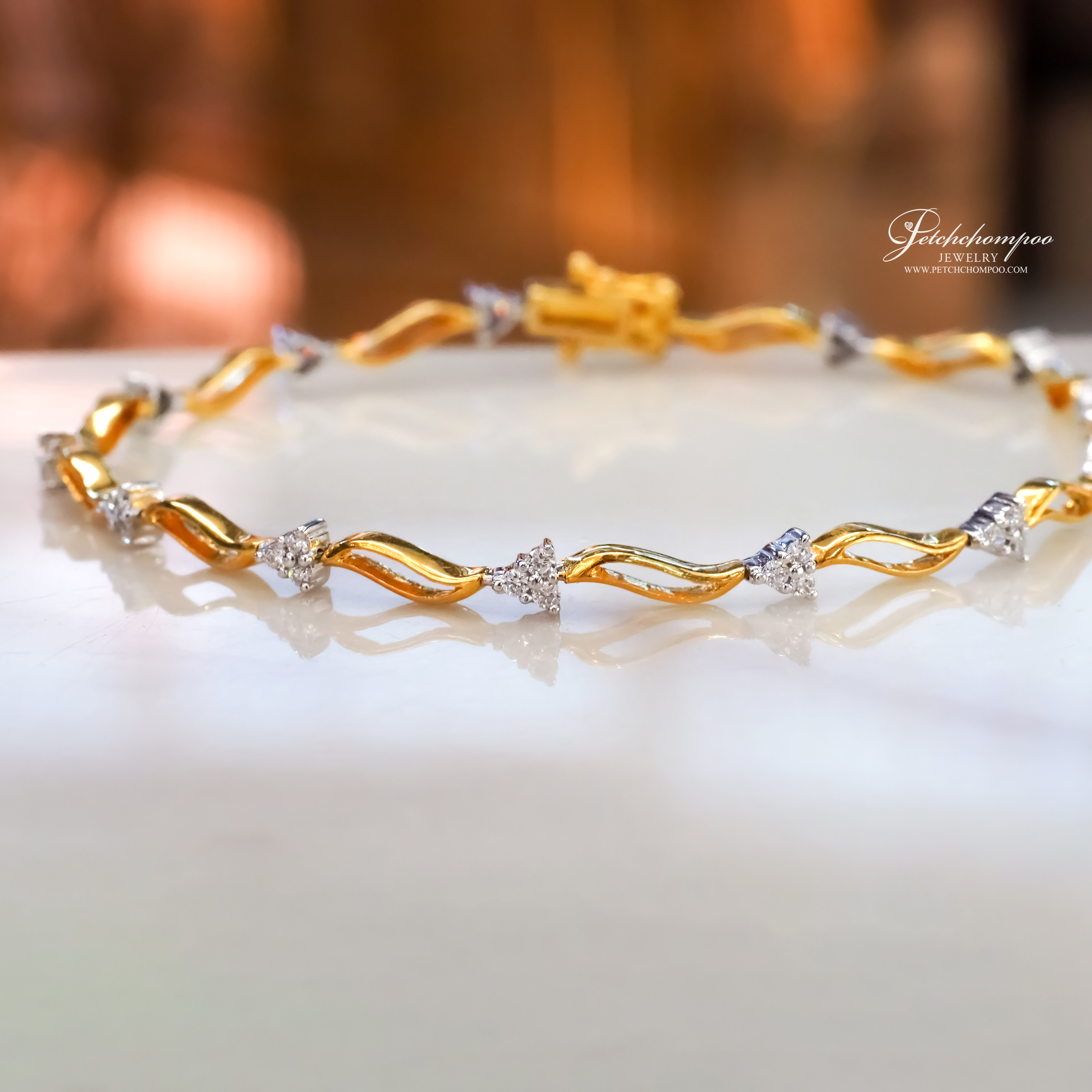 This captivating bracelet features a flowing wave-inspired design, interspersed with 33 round brilliant-cut natural diamonds totaling 0.43 carat. Set in 18K yellow gold weighing 6.23 grams, it brings together softness and sophistication in every twist. Perfect for those who adore subtle sparkle with artistic form.