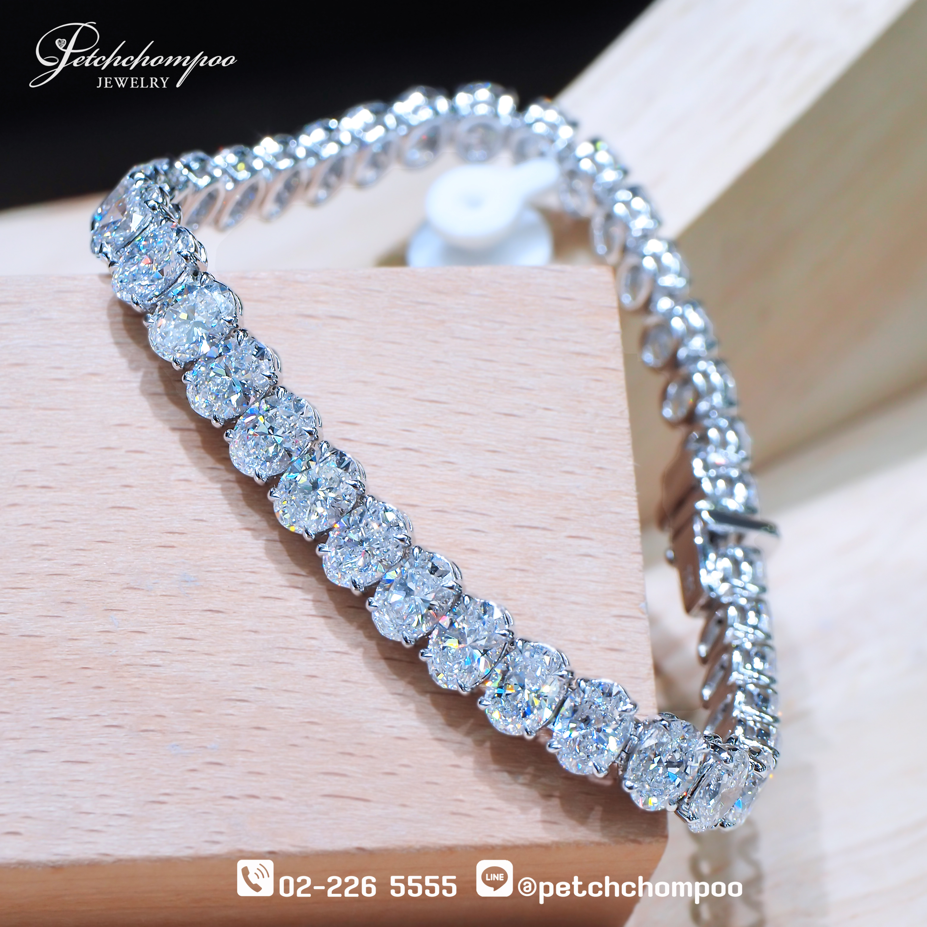 This exquisite bracelet showcases a continuous line of oval-cut diamonds, celebrated for their elegant elongated shape and exceptional brilliance. Each diamond is carefully set to allow maximum light reflection, creating a radiant flow of sparkle along the wrist. Crafted in luxurious 18K white gold, the refined setting enhances the beauty of each diamond while maintaining a sleek and sophisticated silhouette. The oval diamond line bracelet represents timeless elegance and is a signature style in the world of high jewelry.