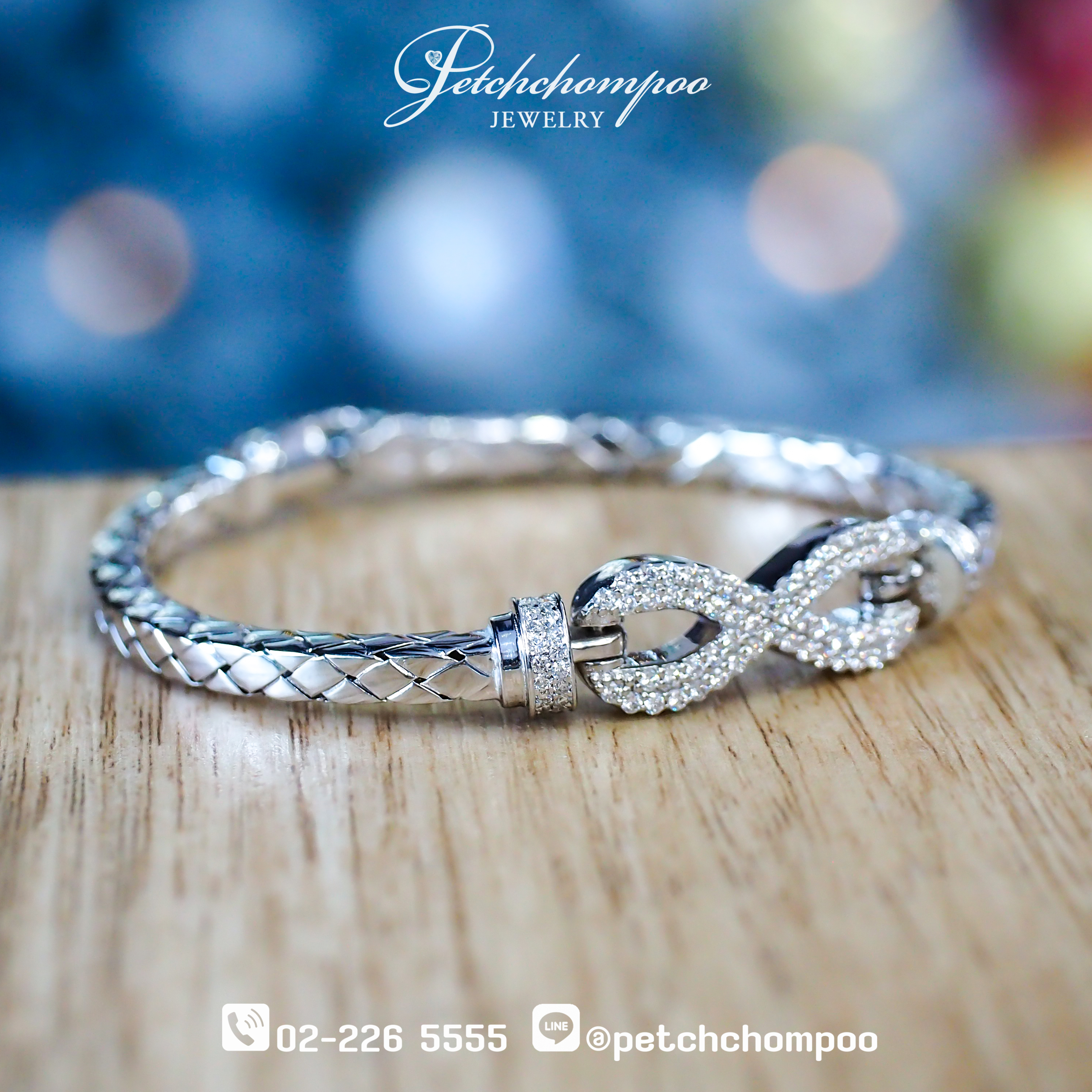 The Infinity Grace Diamond Bangle showcases the iconic ∞ infinity motif, symbolizing eternal love and unending elegance. Crafted in premium 18K white gold, the centerpiece is adorned with 108 fine pavé diamonds totaling 1.17 carats, delivering captivating sparkle from every angle. Its intricately woven bracelet structure offers durability with a soft, comfortable fit — perfect for everyday chic or sophisticated styling. A refined statement piece made to shine endlessly. ✨