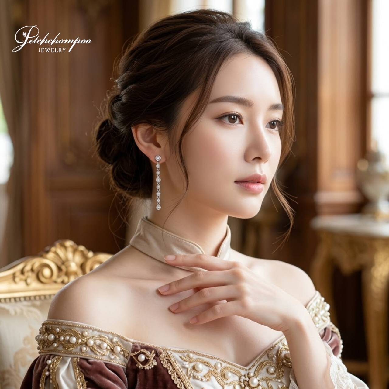 The Diamond Cascade Elegance™ Earrings feature a sleek long-drop design, delicately set with 16 natural diamonds totaling 0.96 carats in a refined bezel setting. Each stone radiates brilliance, capturing the light with every turn. Crafted in 18K white gold weighing 3.20 grams, these earrings embody both simplicity and sophistication — perfect for evening glamour or elevating everyday elegance.