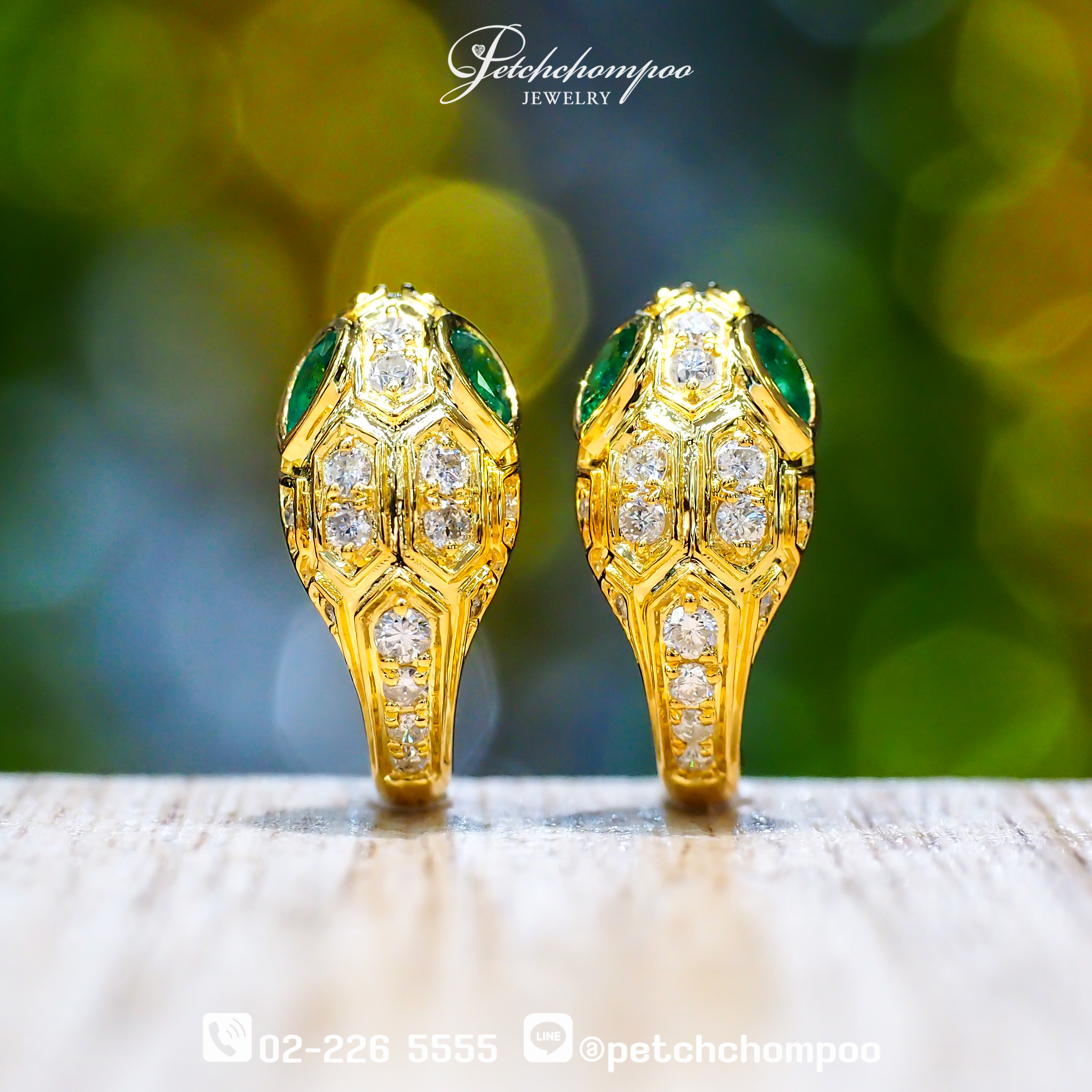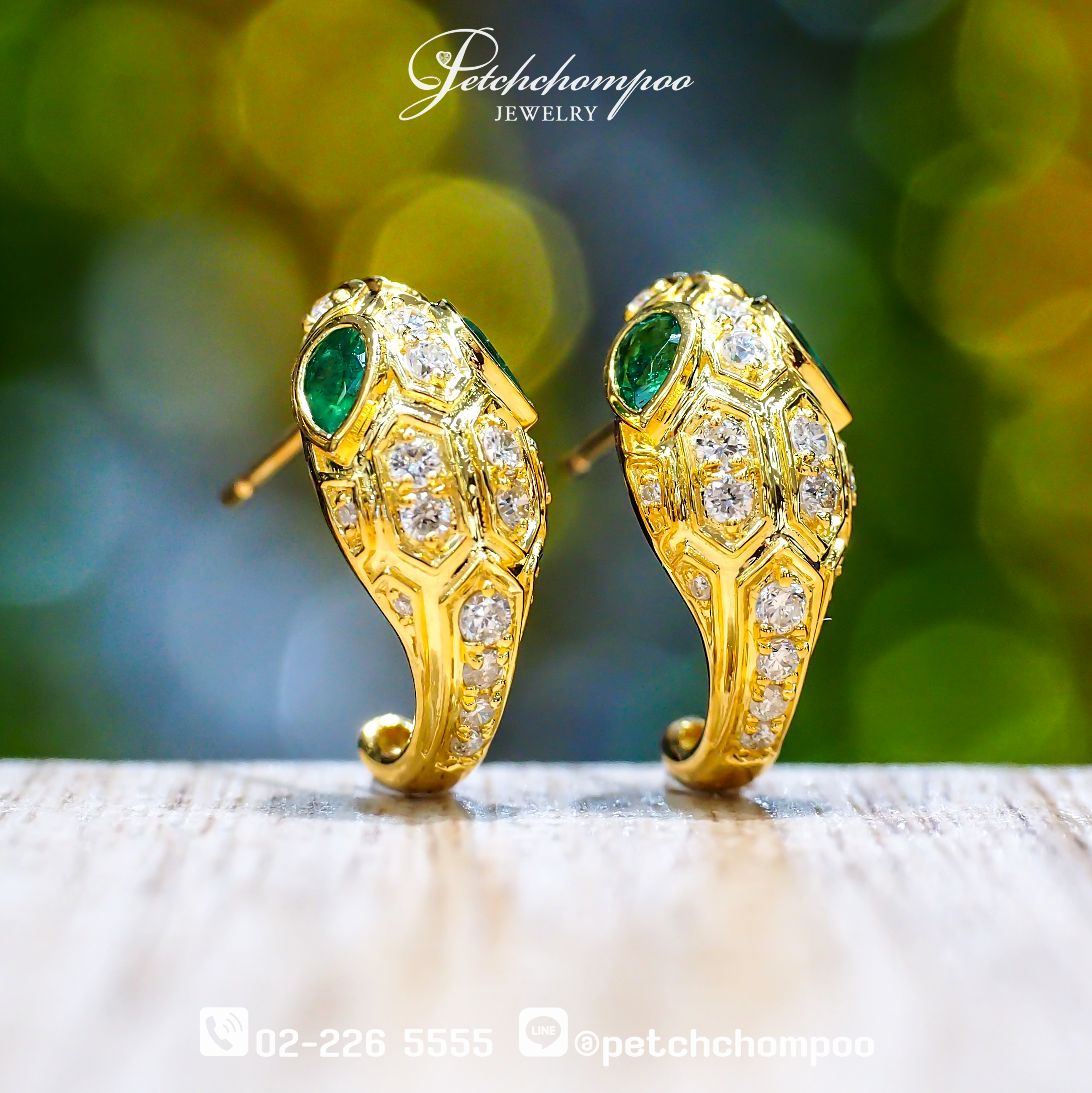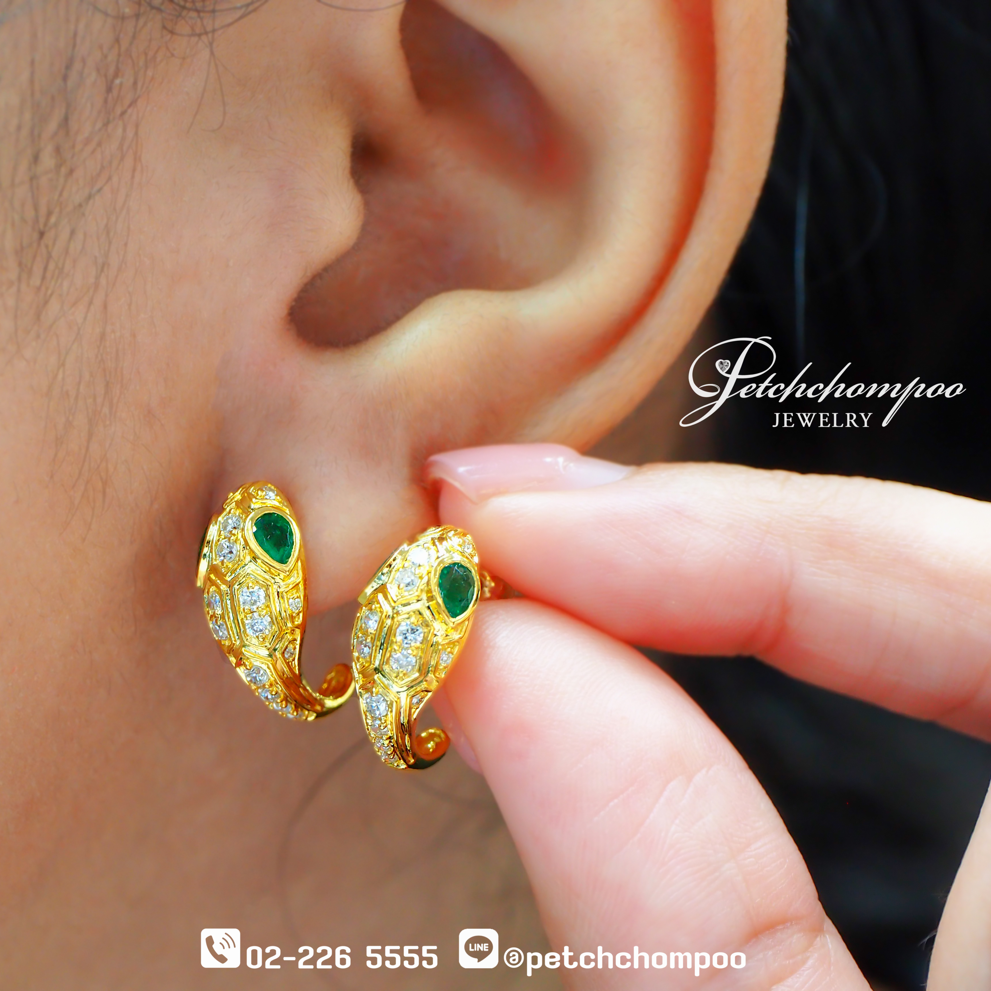 Inspired by the mystique of the serpent — a timeless symbol of wisdom and rebirth — the Serpent Émeraude™ earrings embody refined strength and alluring beauty. Set with 4 vivid green emeralds totaling 0.60 carats and 32 brilliant diamonds totaling 0.40 carats, the design evokes the glimmering eyes and scales of a golden serpent.