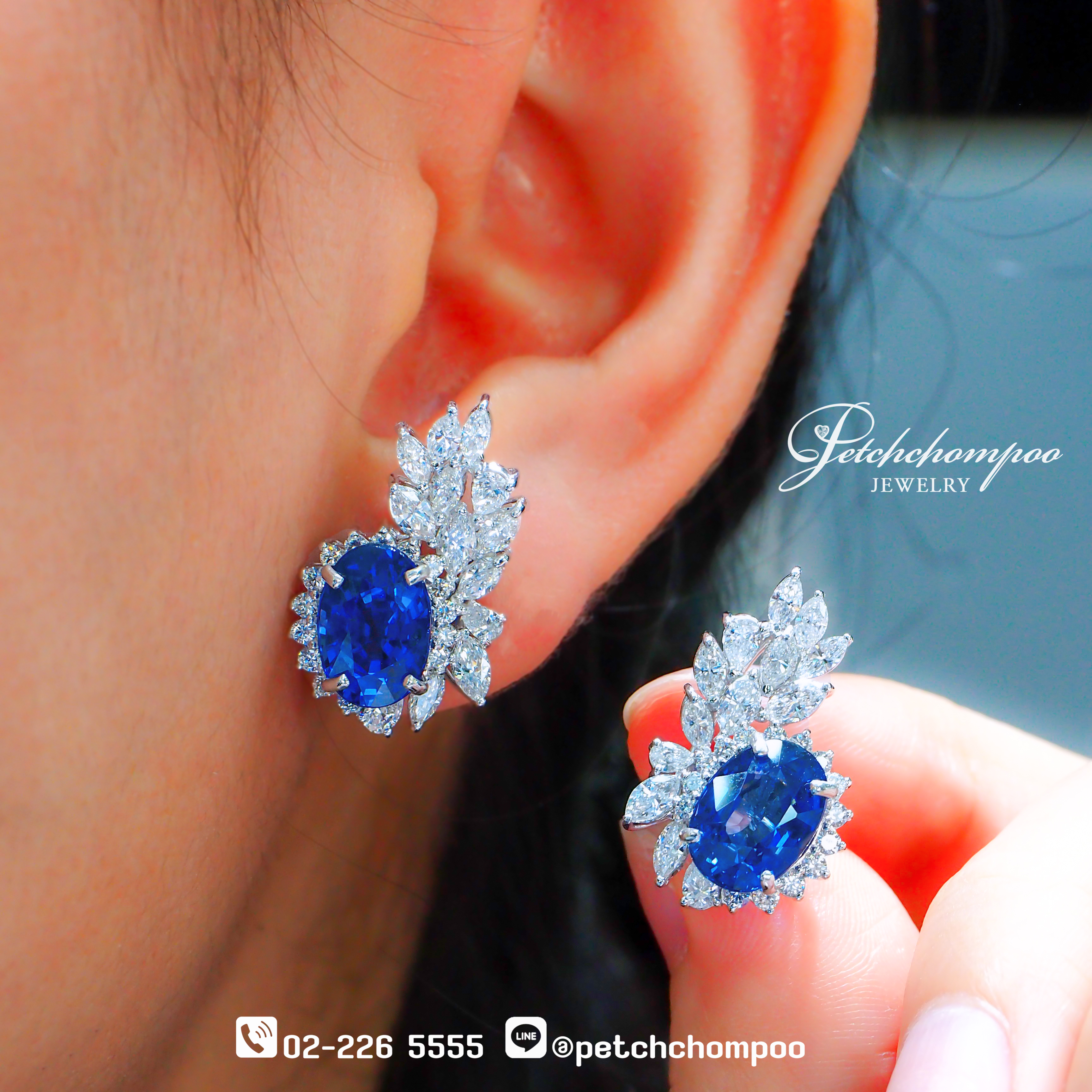 Pear diamonds: 0.36ct (6 pcs) Together they form a shimmering leaf-and-wing silhouette, creating motion, depth, and dimension in every angle. Crafted in 18K white gold, 8.92 grams, this pair feels elegant yet substantial, certified by HGT to ensure authenticity and gemological precision. A statement of celestial elegance—perfect for formal events, red-carpet glamour, or the personal collection of true sapphire connoisseurs. ♦✨