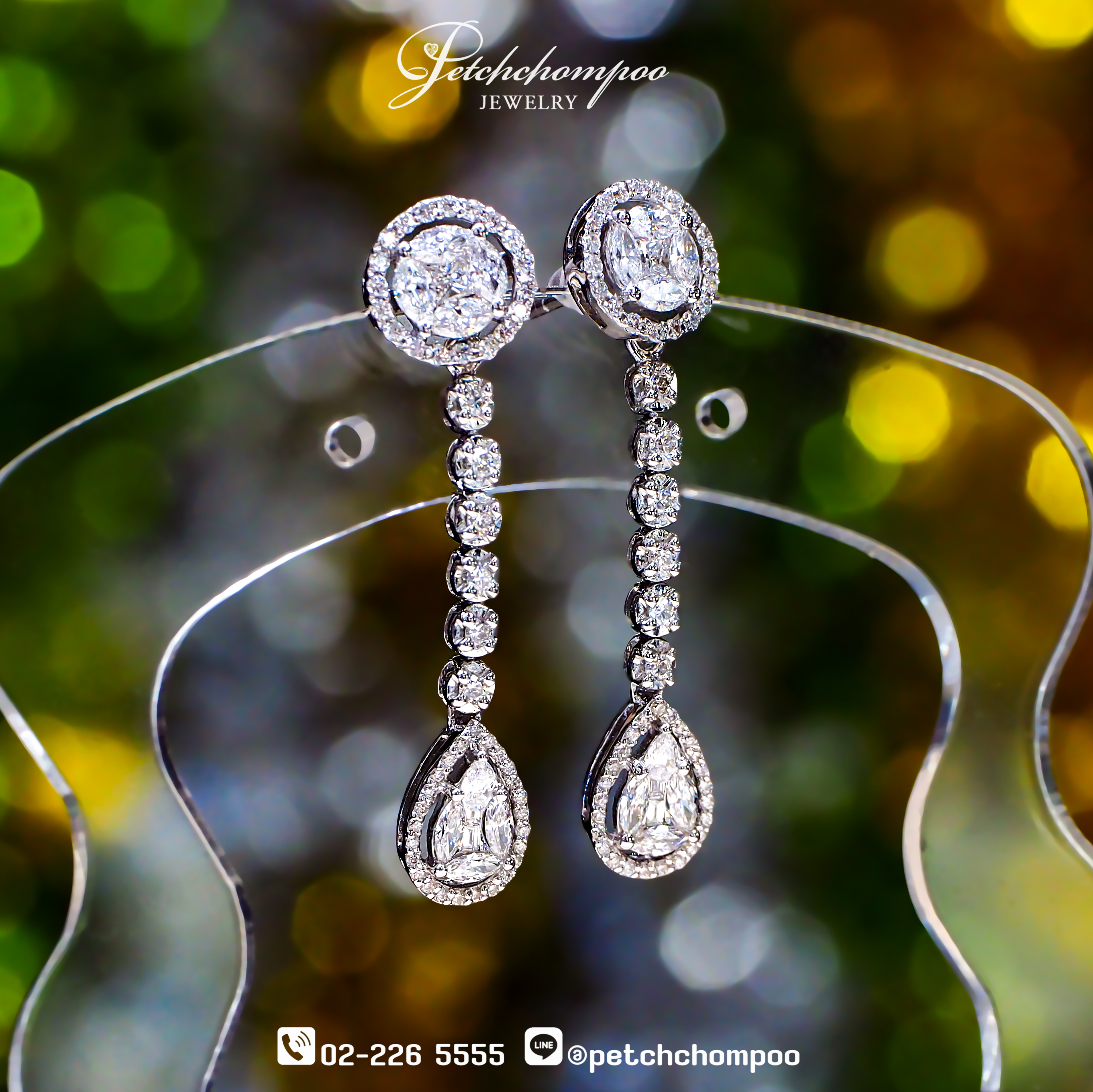The Celestial Bloom Drops™ earrings combine soft floral elegance with the mesmerizing brilliance of teardrop diamonds. The upper part features a delicate diamond flower, while the elongated line of round diamonds creates a graceful flowing movement ► leading to a pear-shaped drop crafted with a composition of mixed-cut diamonds → enhancing depth, symmetry, and luxury in every angle.