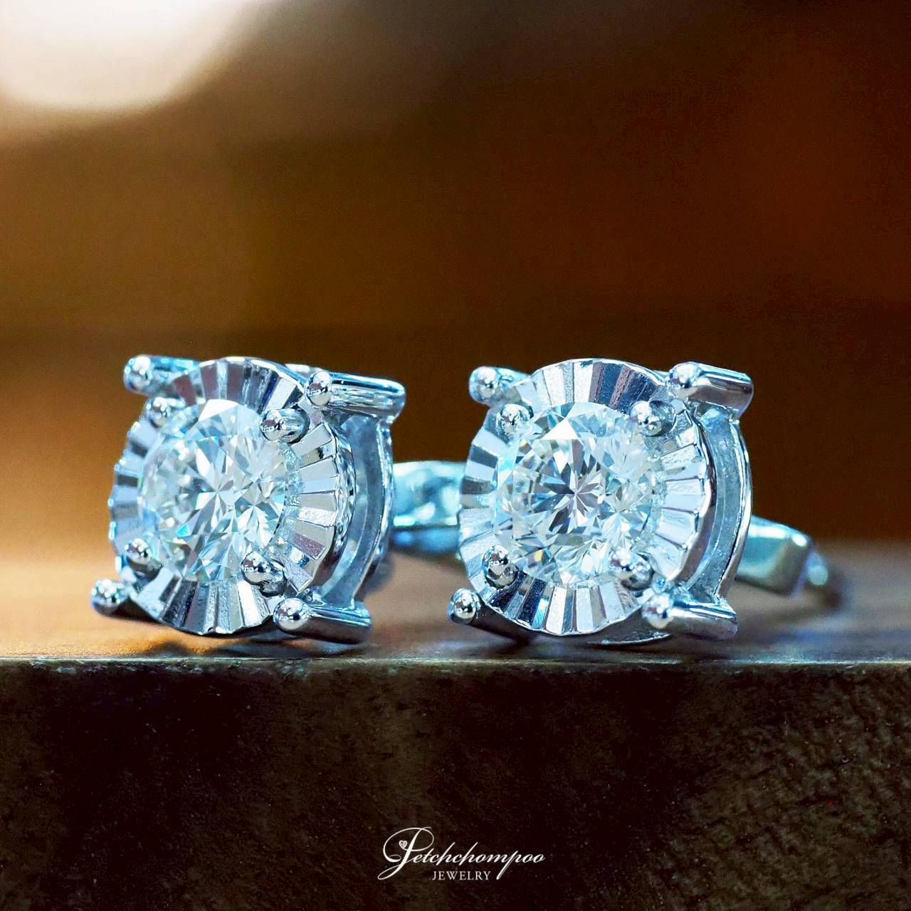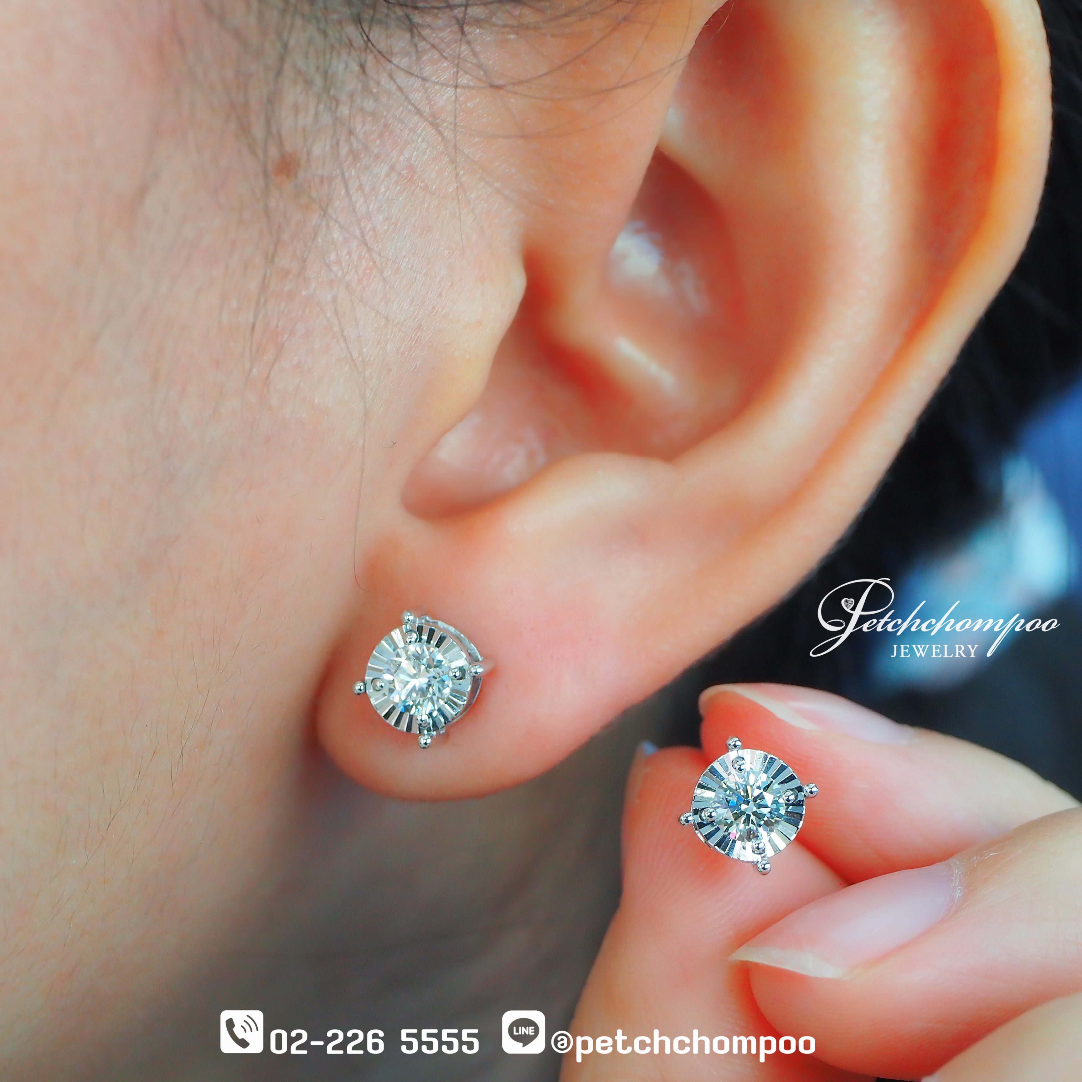 A refined pair of diamond studs crafted with a mirrored crown setting designed to enhance sparkle and visually enlarge the center stones. Each earring features a 0.40-carat round brilliant diamond, delivering crisp fire and radiant clarity under any lighting. The sculpted reflective bezel intensifies the luminosity, creating a modern yet timeless elegance—perfect for daily wear or sophisticated occasions. Crafted in 18K white gold (2.30 grams) for durability and a luxurious finish.