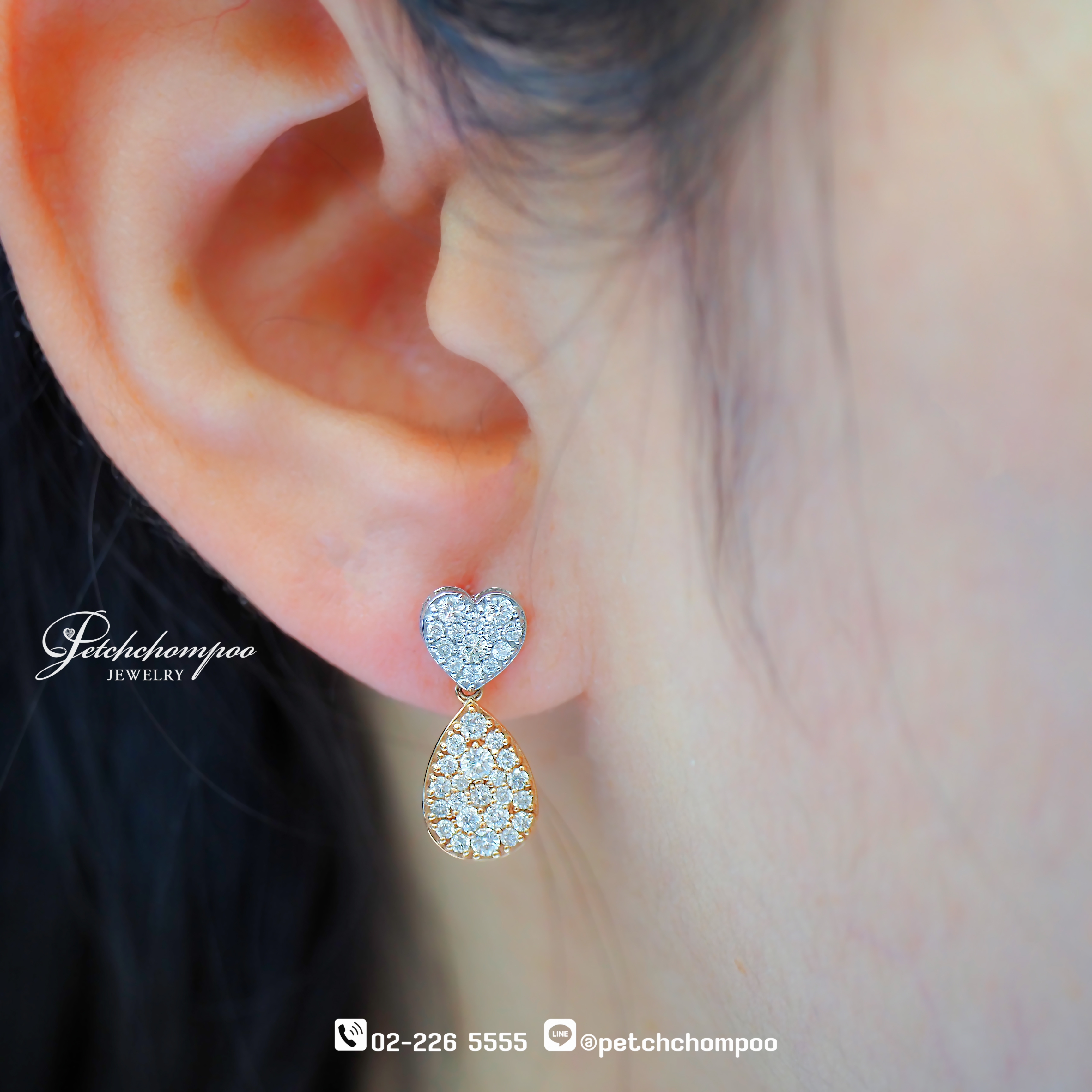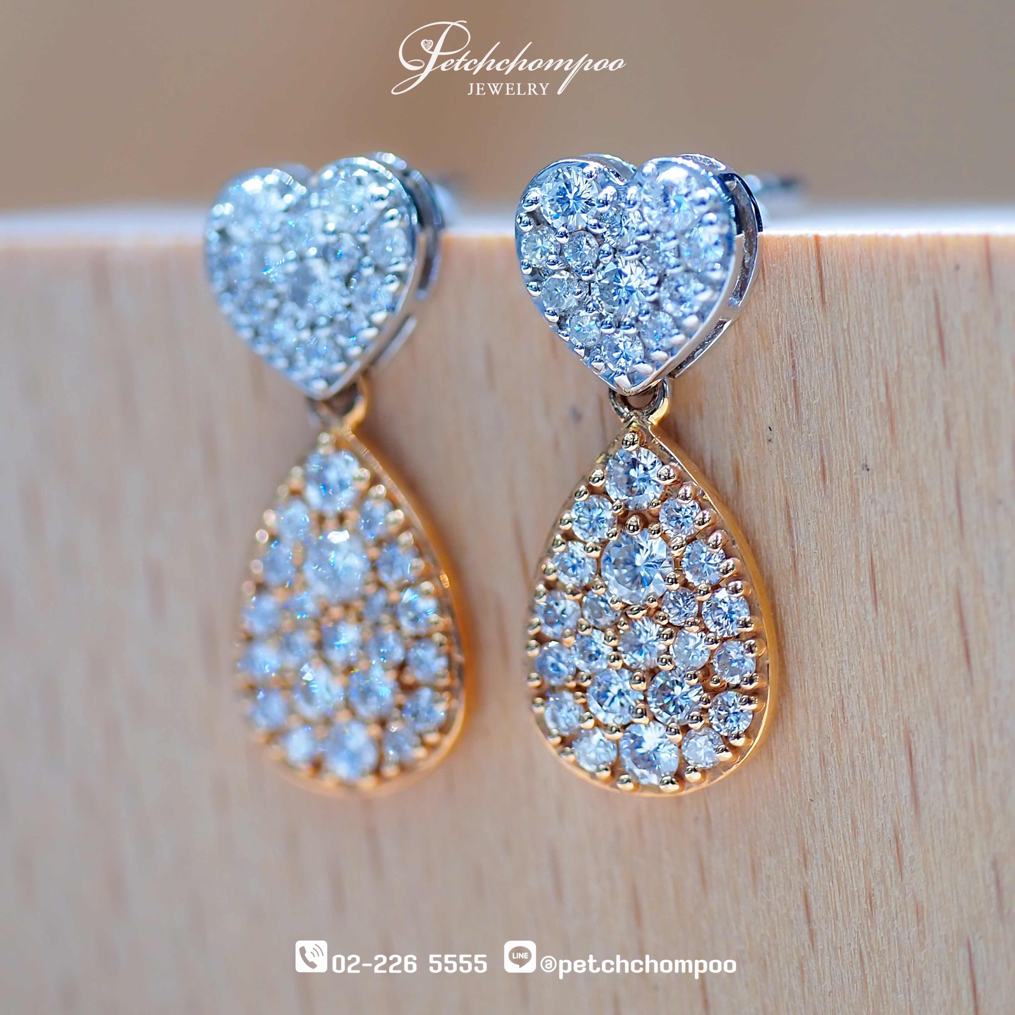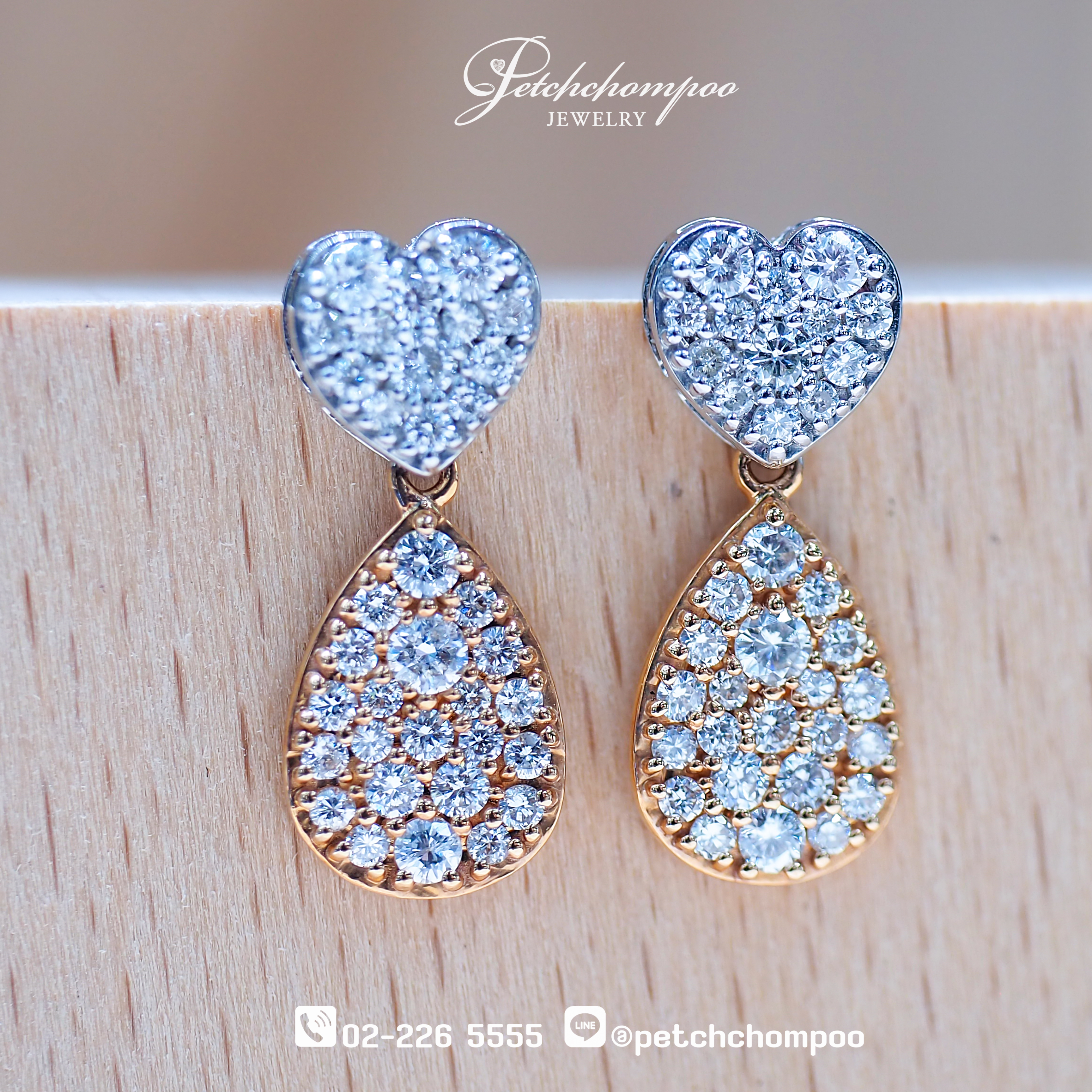 Heart & Teardrop Duet – Diamond Double-Tone Earrings