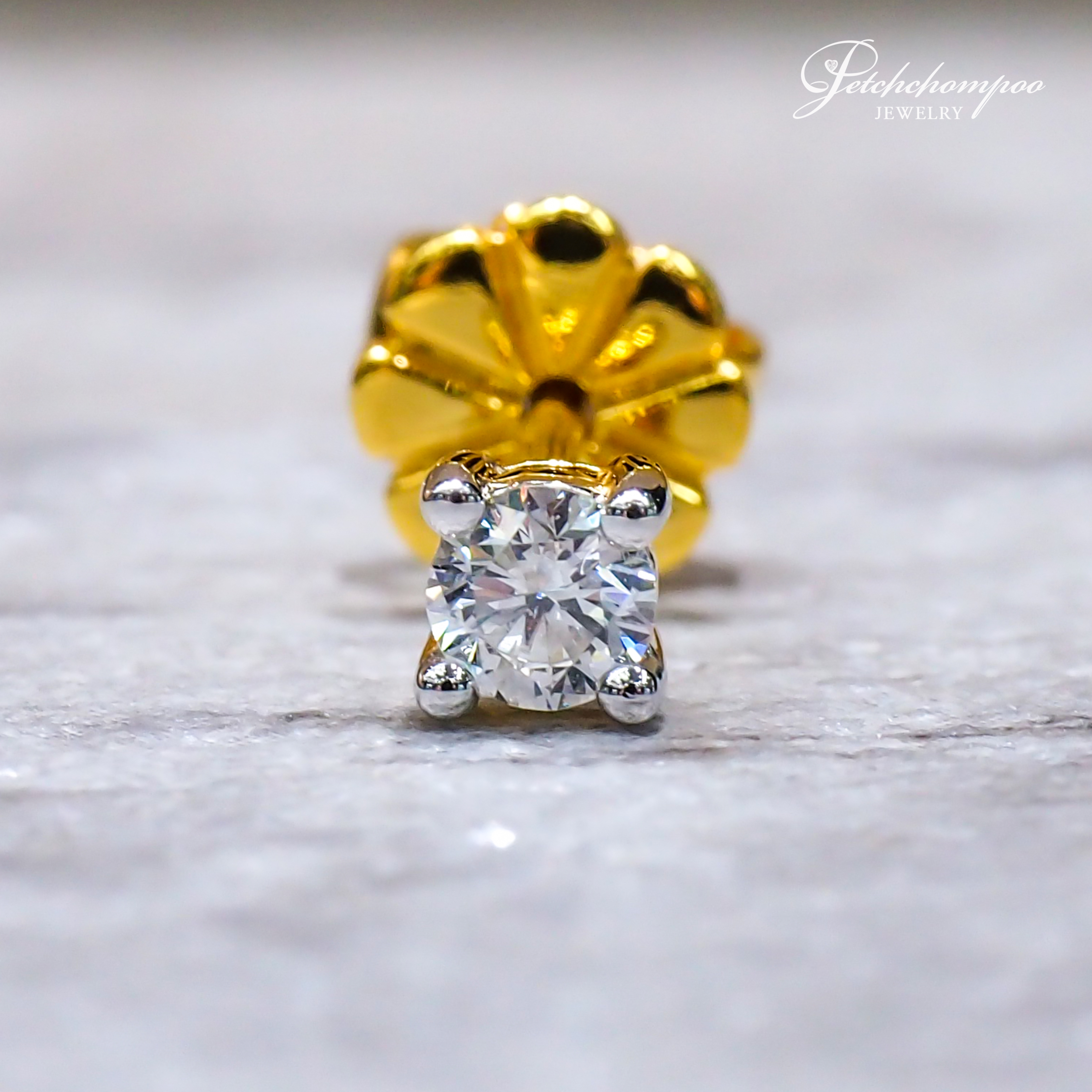A refined minimal diamond stud, featuring a 0.13-carat round brilliant diamond with subtle yet elegant sparkle. Crafted in 18K yellow gold, paired with white prongs to enhance the diamond’s brightness, creating a clean and premium contrast.