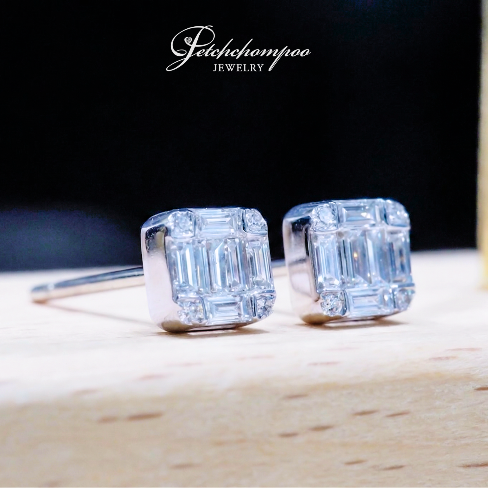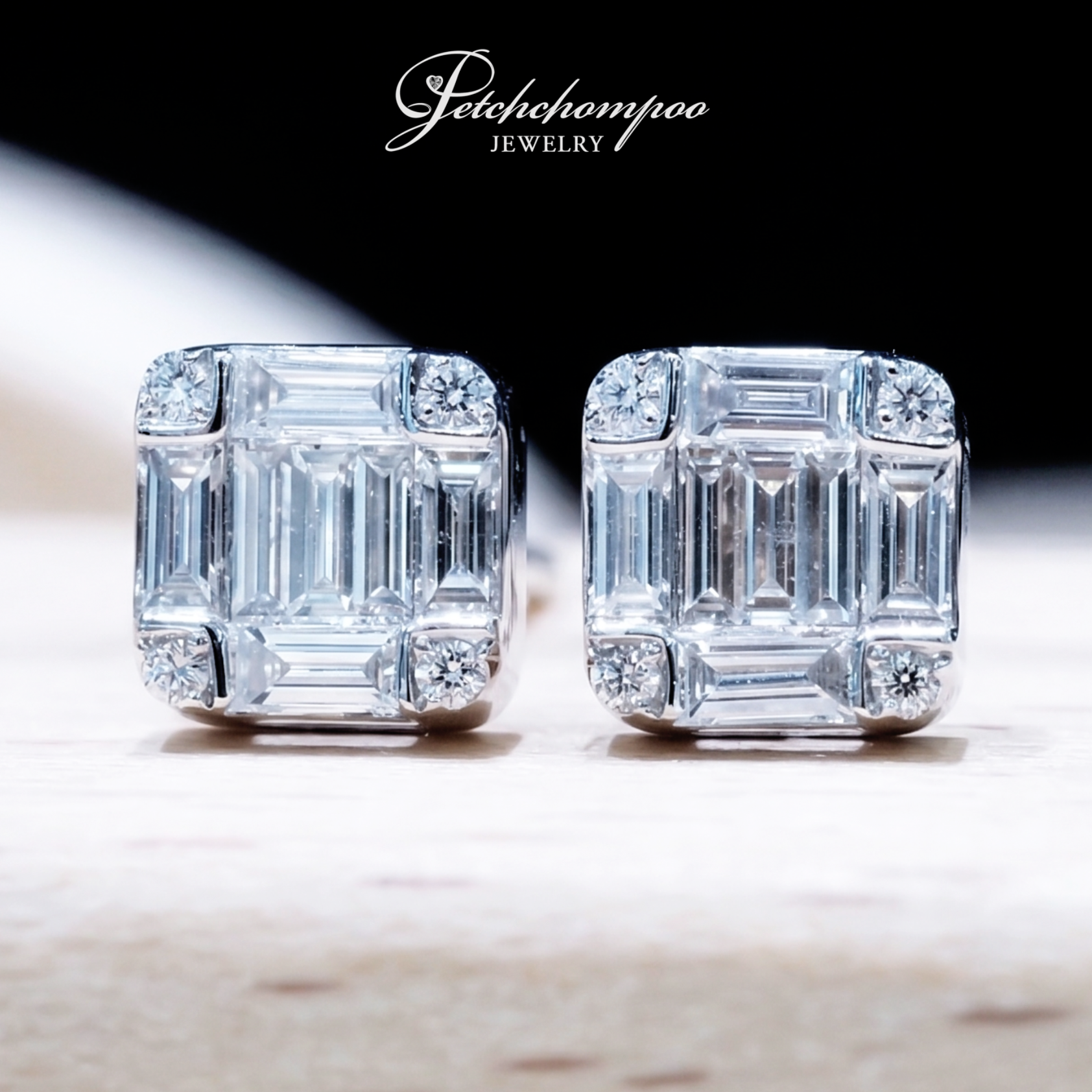 A refined pair of square-shaped diamond earrings inspired by the iconic Art Deco aesthetic, blending structure, symmetry, and modern sophistication. The baguette-cut diamonds are meticulously arranged to create an illusion setting, giving the appearance of a larger single stone, while round brilliant diamonds at the corners enhance sparkle and dimension. Crafted in 18K white gold, these earrings offer a clean yet luxurious look—perfect for both everyday elegance and formal occasions.