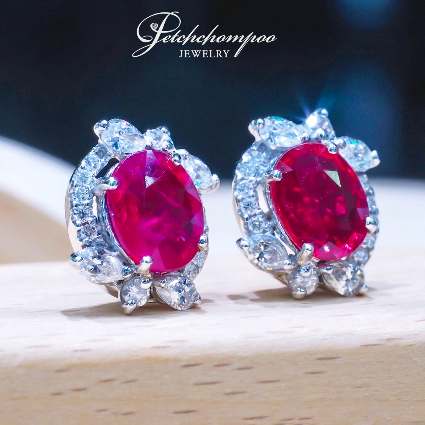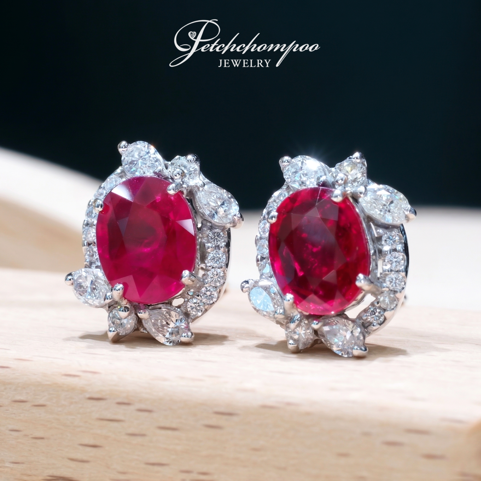 • Design → Oval ruby with floral diamond halo
