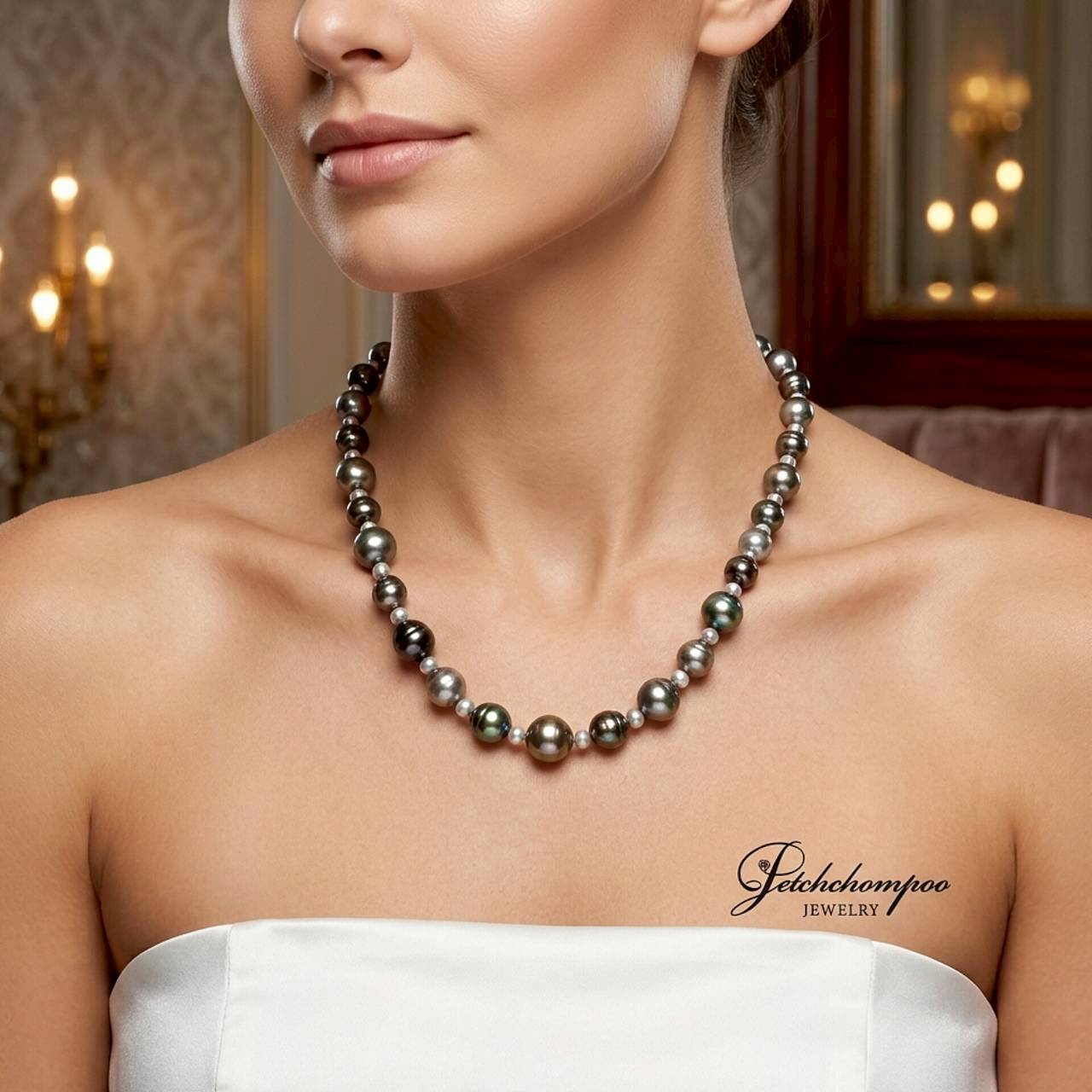 The Baroque Elegance™ necklace features hand-selected natural baroque pearls, each with its own unique silhouette and luster. Their natural curves and luminous hues — from silvery gray to green-tinted black and blush bronze — create an artistic harmony that embodies character and timeless sophistication. Whether worn for an elegant soirée or to elevate a casual ensemble, this necklace speaks volumes of refined individuality.