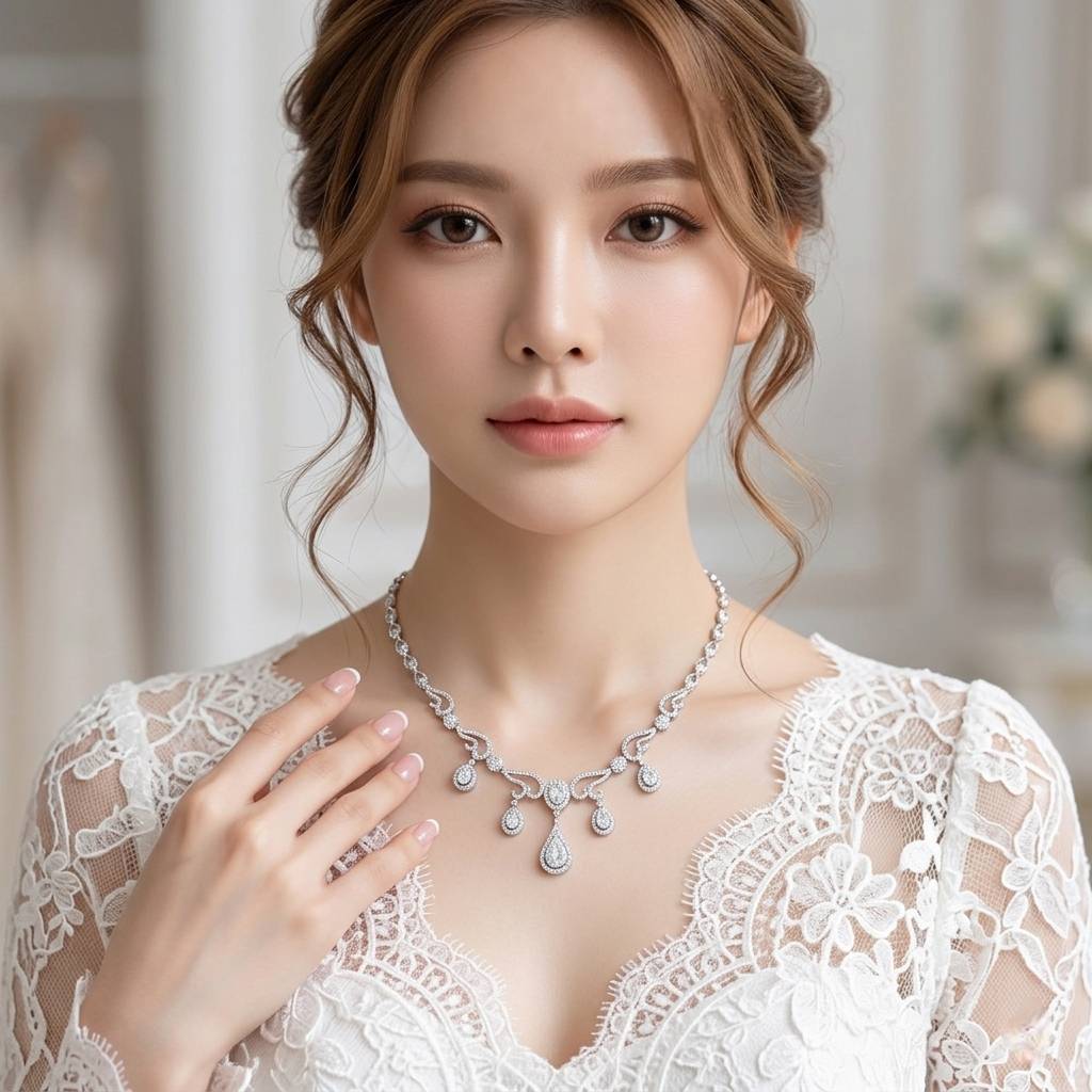Crafted in 18K white gold (22.43 grams), this necklace drapes beautifully around the neckline, offering a look of refined sophistication and timeless grandeur.