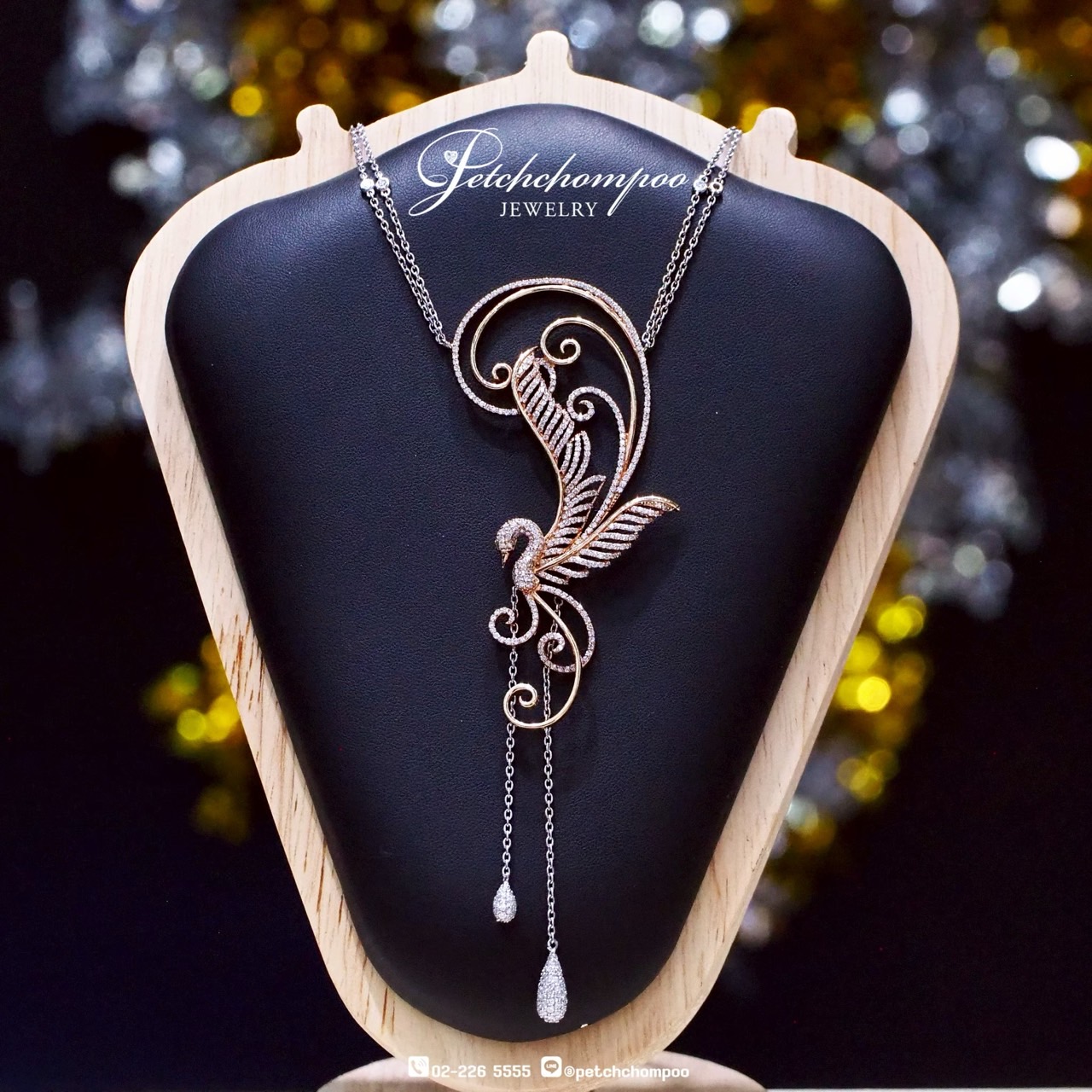 A stunning expression of artistry, this diamond necklace inspired by the graceful form of a bird features 564 round brilliant diamonds totaling 3.20 carats. The intricate curves and feather-like details evoke the freedom and elegance of flight, beautifully captured in precious stones.