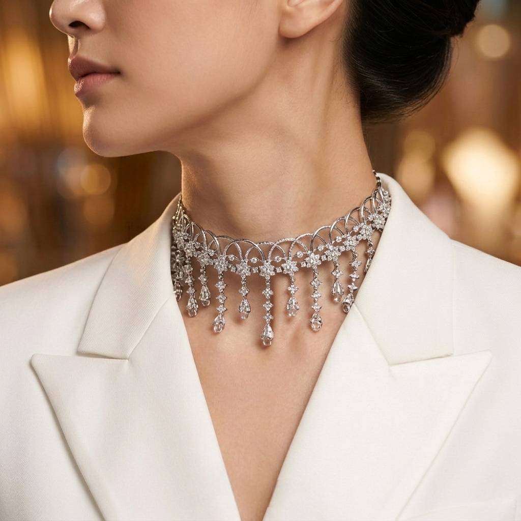 ► A majestic choker designed to enchant • Inspired by royal elegance with arched lines and dramatic drop details