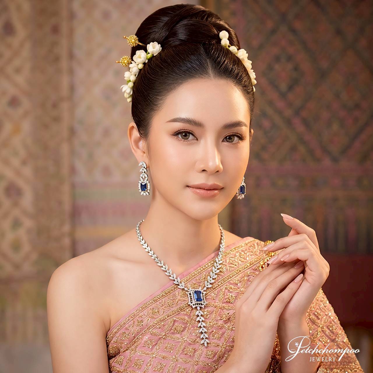 This extraordinary High Jewelry necklace features a magnificent 7.27-carat Natural Zircon in an elegant emerald cut, revealing crisp facets and deep celestial blue brilliance. Accented by 213 natural diamonds totaling 4.75 carats, arranged in a refined cascading leaf motif, the design creates fluid movement and radiant sparkle across the entire silhouette. Crafted in white gold weighing 37.50 grams, this masterpiece embodies grandeur, sophistication, and red-carpet elegance ⇒ A statement jewel reserved for moments of distinction.