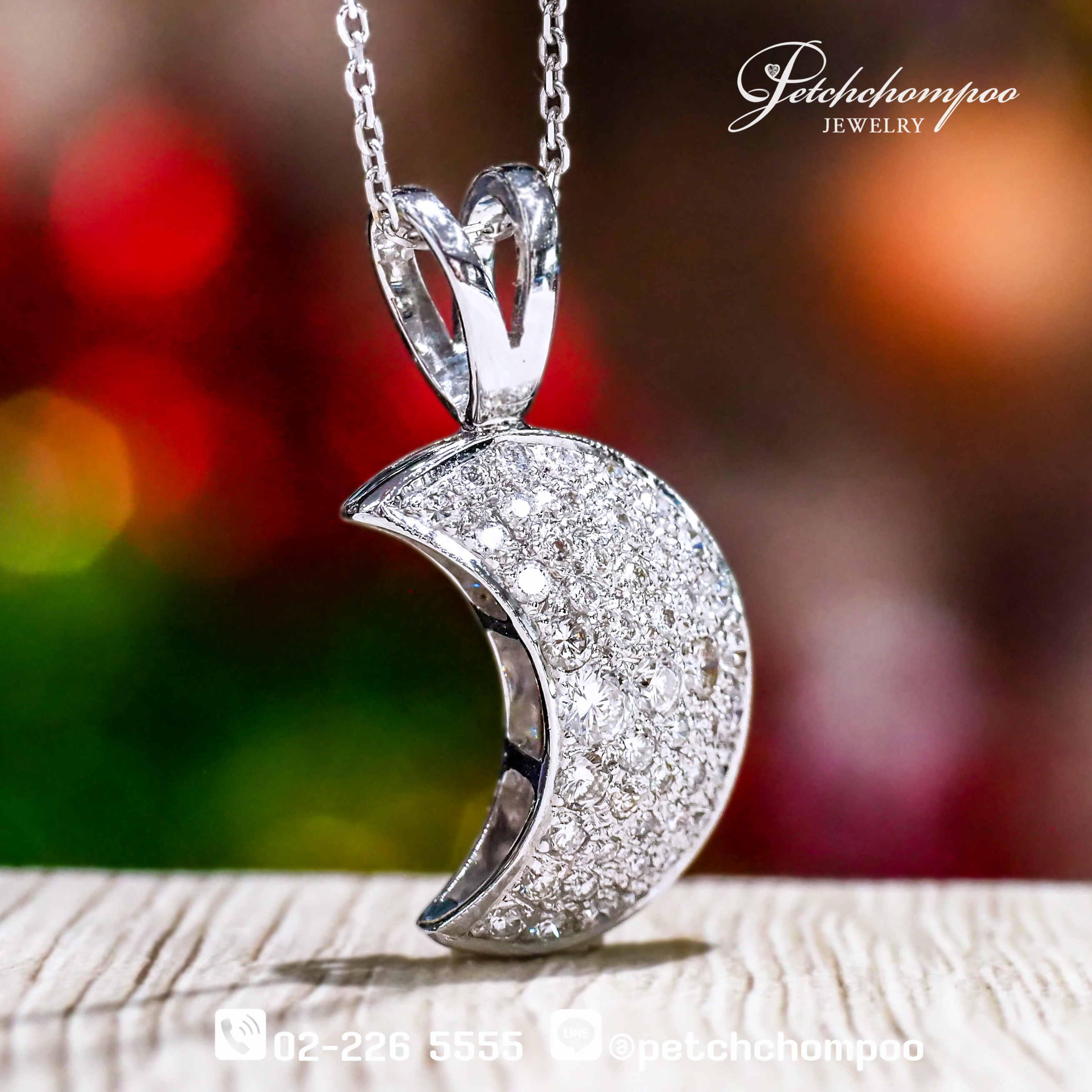 The Moonlit Whisper™ pendant captures the grace of a crescent moon, adorned with 0.70 carats of dazzling diamonds that shimmer like starlight in the night sky. Set in 18K white gold weighing 3.13 grams, this elegant piece symbolizes romance and serenity, making it a versatile jewel that can be worn alone or layered for added luxury.