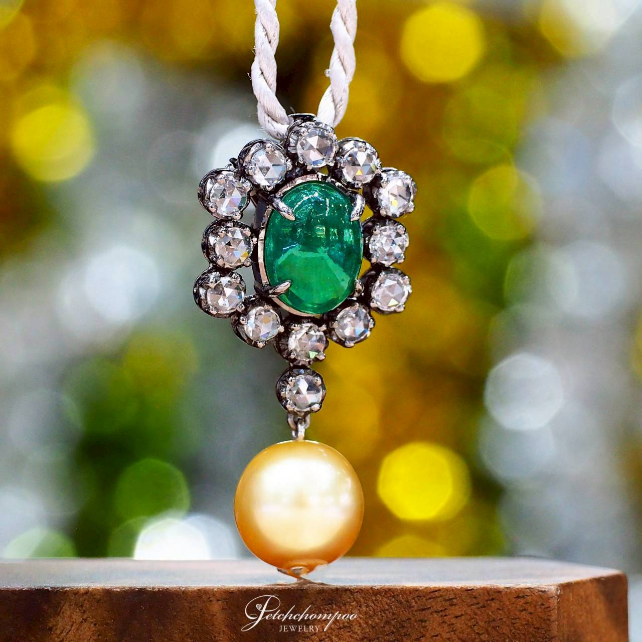 The Emerald Victorian Dual-Charm™ is a masterpiece of 2in1 high jewelry, functioning beautifully as both a pendant and a brooch. This multifunctional design offers versatility without compromising on luxury. At its heart is a 2.95ct Zambian emerald, rich in deep royal green. It is surrounded by 13 rose-cut diamonds (1.00ct total), giving a soft vintage sparkle characteristic of Victorian artistry. Suspended below is a warm golden-hued natural pearl, adding balance, elegance, and classic charm. Crafted in 18K white gold (15.08g), the piece features a concealed dual mechanism:
