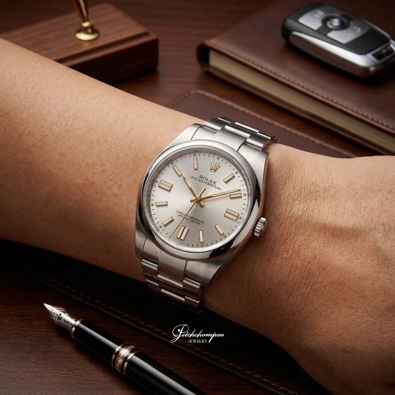 Featuring a stunning Silver Dial that captures light beautifully, contrasted with 18k Yellow Gold markers. This timepiece offers the ultimate sophisticated and classic look. The 41mm case size is the most popular choice, versatile for any outfit and reflecting a high-end taste from every angle.