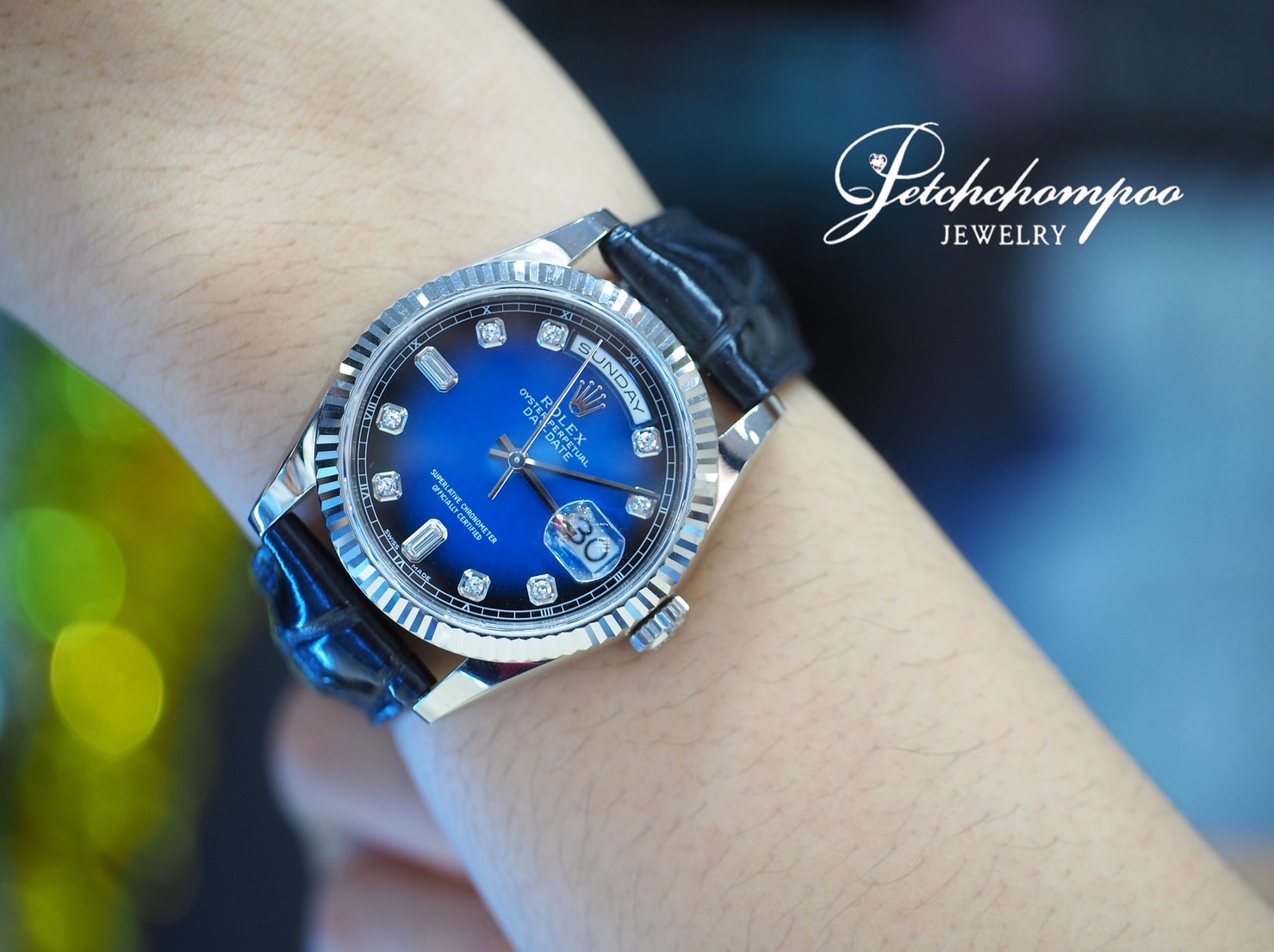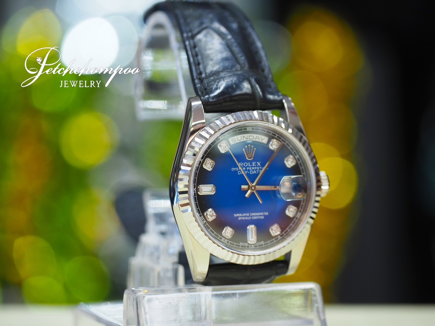 Rolex daydate ref.118239 รุ่นใหม่ white gold18k 3 จังหวะ หน้าปัดน้ำเงินเพชรเบ้าใหญ่