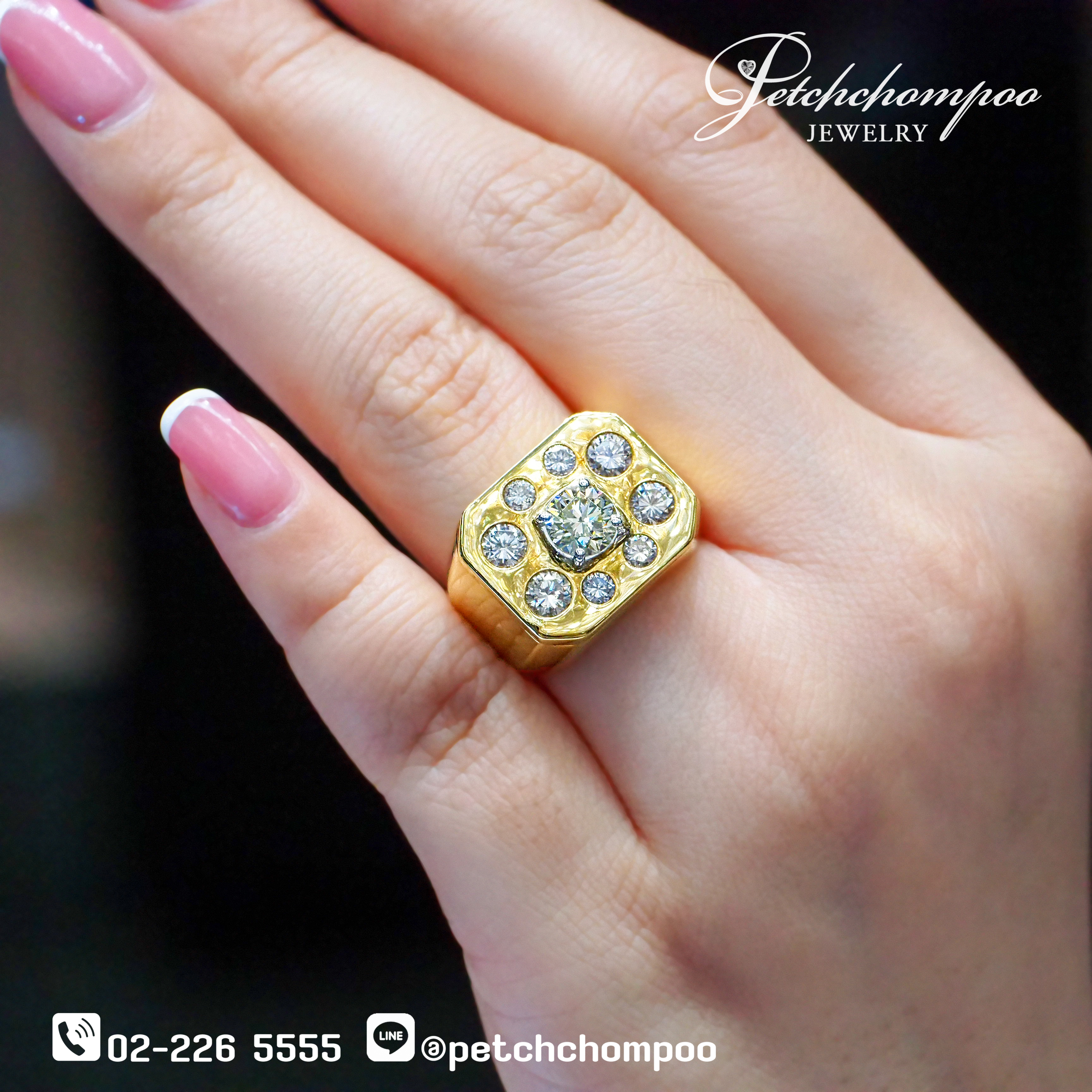 Crafted for modern gentlemen of distinction, this exclusive ring features a commanding 1.00-carat center diamond, surrounded by 8 additional brilliant diamonds—4 large and 4 smaller stones—totaling 2.44 carats. Set in 15.85 grams of solid 18K yellow gold, the bold octagonal frame exudes confidence and power. Perfect for executives, entrepreneurs, or those who demand presence and prestige in every detail.