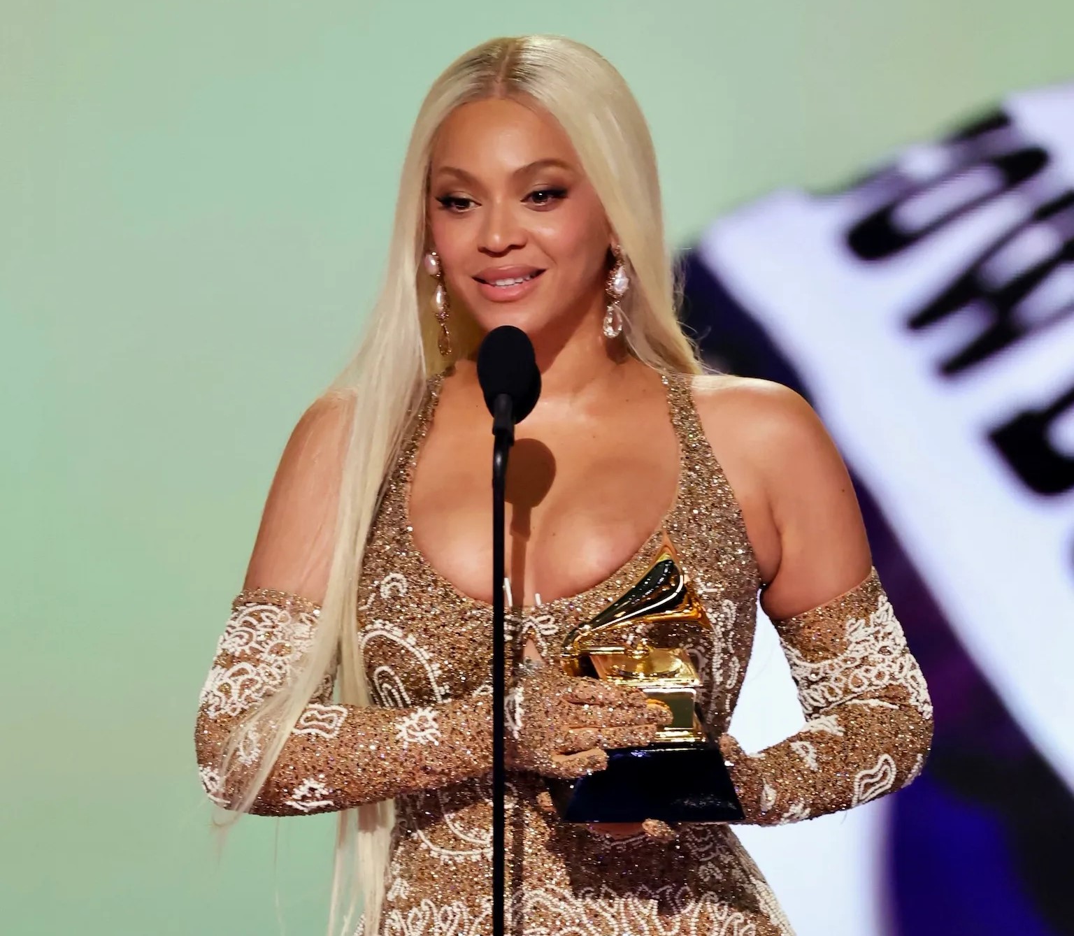 Closing out the lineup is Beyoncé, the artist with the most Grammy nominations this year — and of course, she did not disappoint. She stunned in spectacular jewelry, wearing pear-shaped diamond earrings weighing around 50 carats, accented with pearls and cognac-colored diamonds.