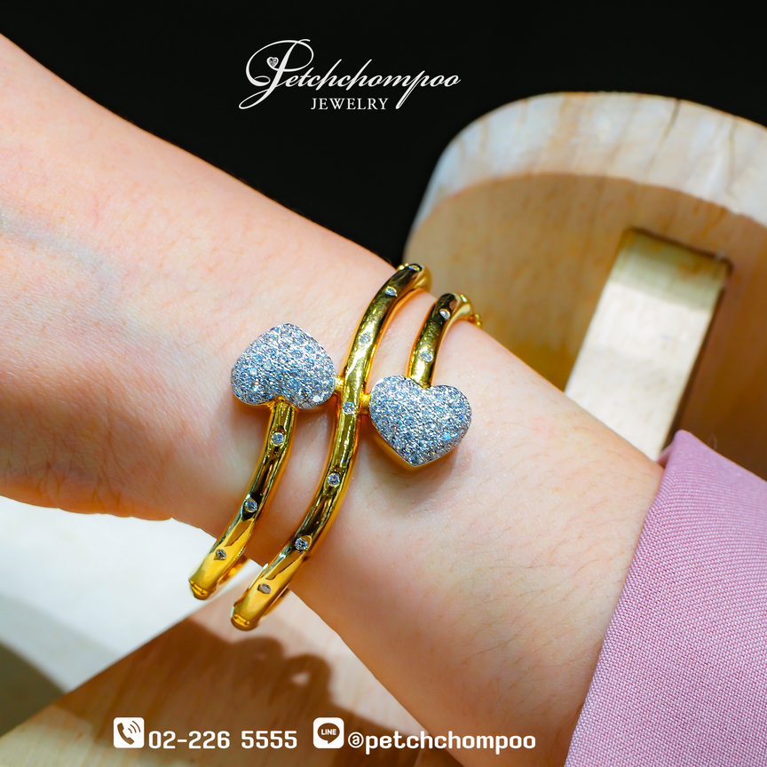 Make a bold impression with this double-heart diamond bracelet, designed to stand out with elegance and charm. Its unique design ensures it can shine beautifully even when worn alone.
