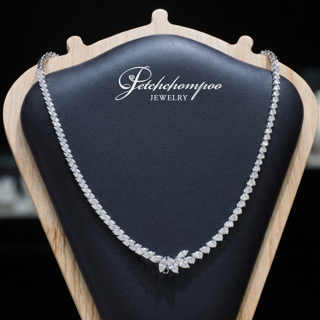 For those seeking something truly regal, this necklace is the definition of luxury. Designed with marquise-cut diamonds arranged in perfect harmony, combined with pear-shaped stones, it creates a graceful cascading effect. The centerpiece resembles a crown—symbolizing light, guidance, and power in life.