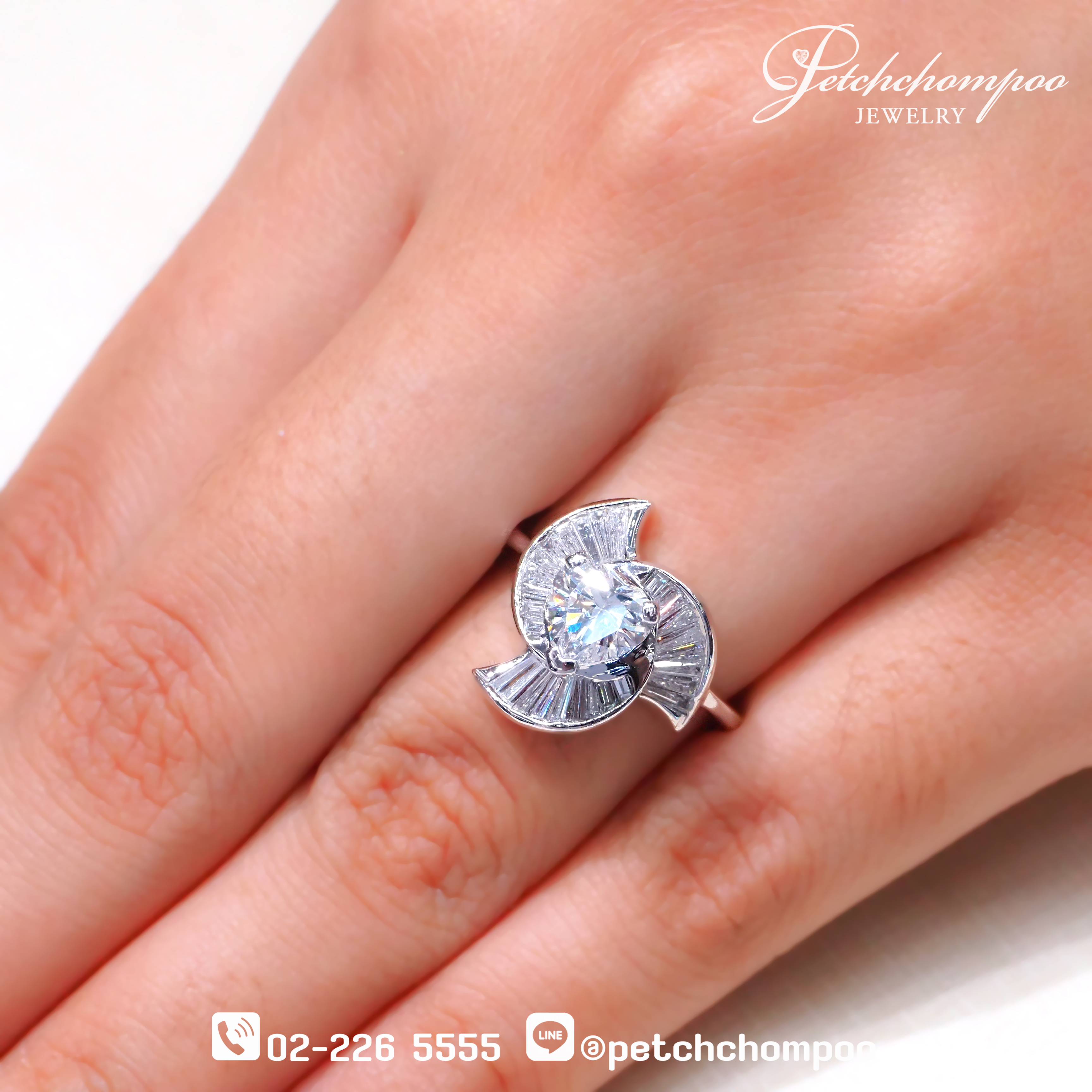 A masterpiece of romance and elegance, this ring features a 1.01-carat heart-shaped diamond of exceptional E VVS2 quality, certified by IGI. Surrounding the center stone is a mesmerizing fan-shaped composition of 0.80 carat of baguette diamonds, designed in a sweeping wave of light. The 18K white gold setting, weighing 4.66 grams, provides a perfect balance between contemporary edge and timeless grace — ideal for the woman whose love dares to shine.