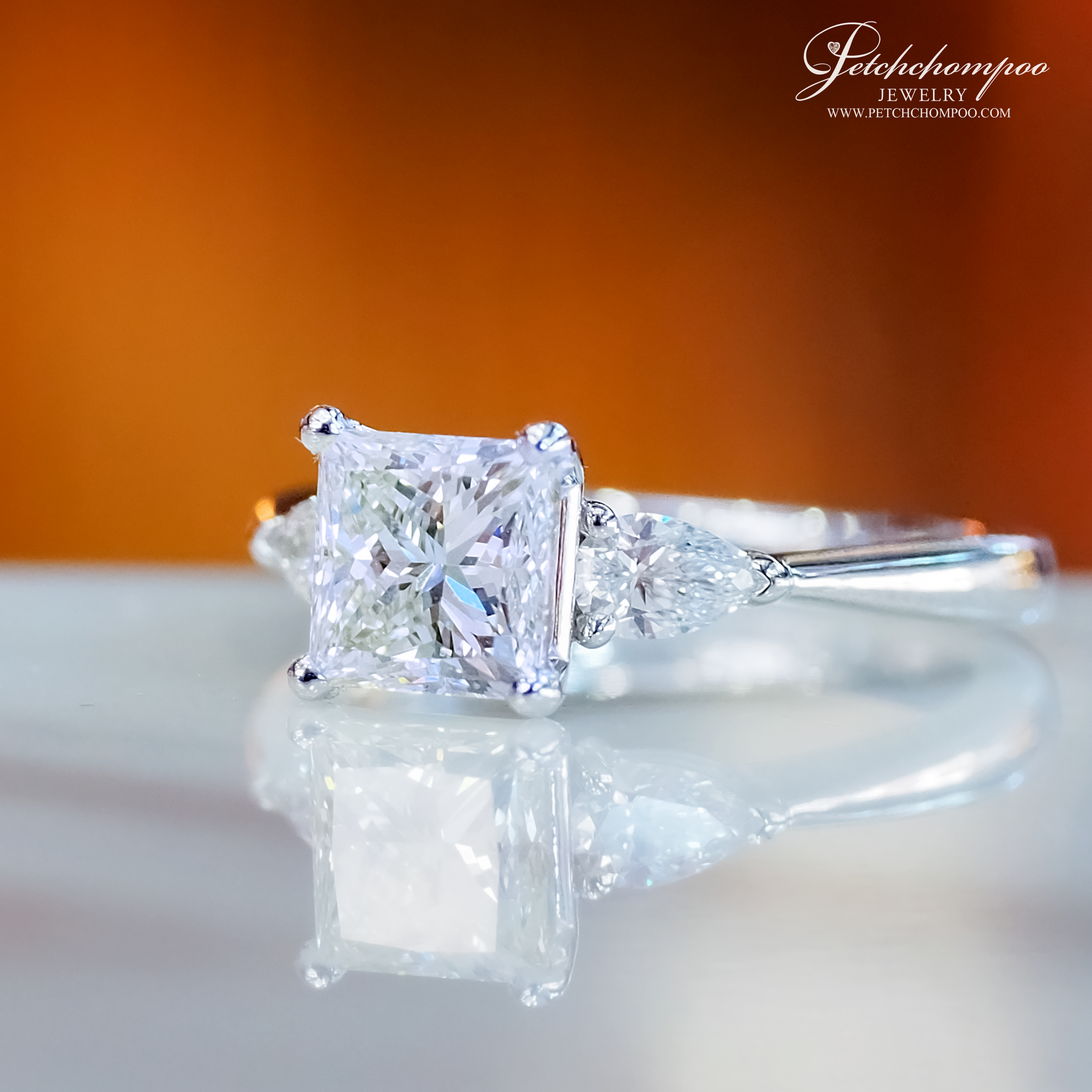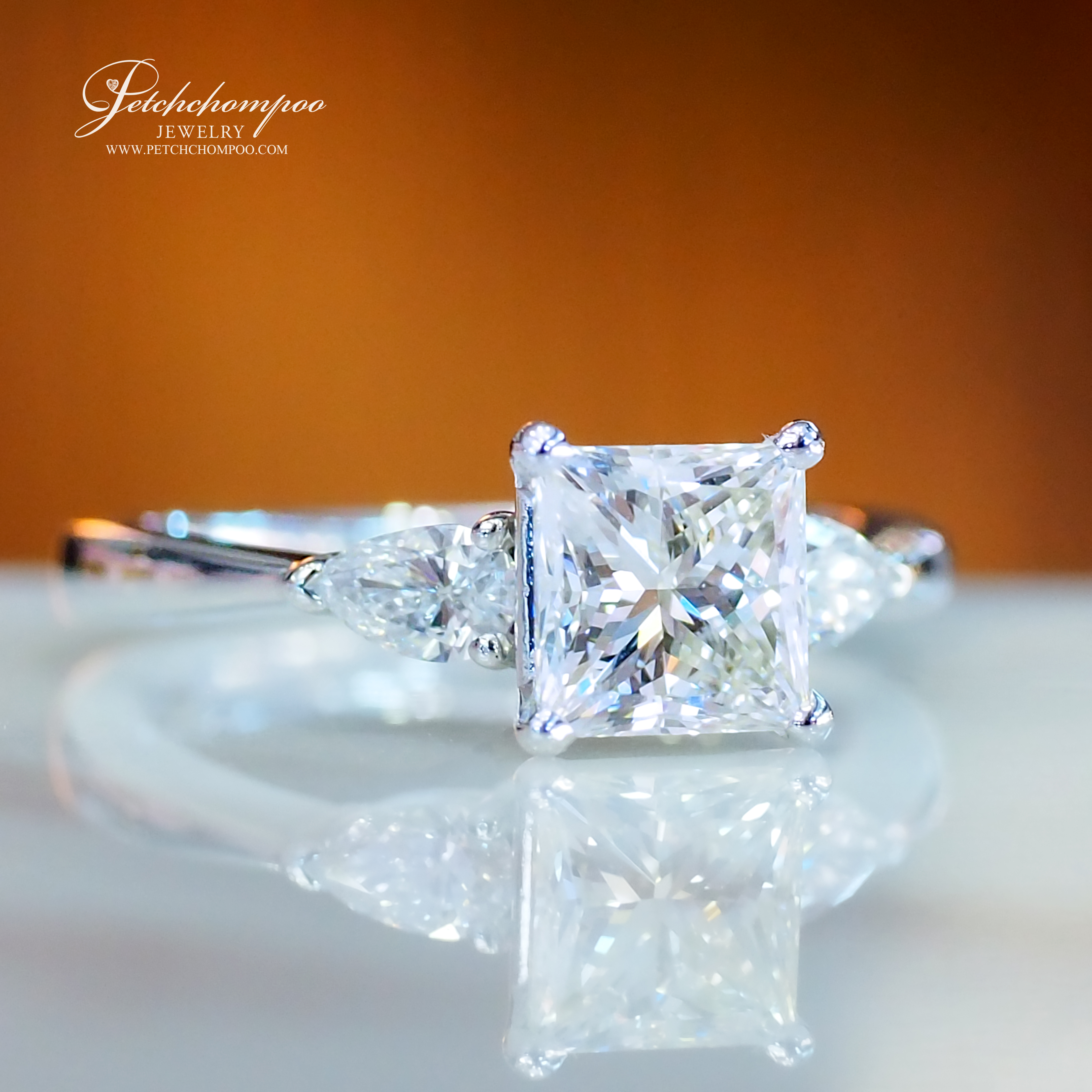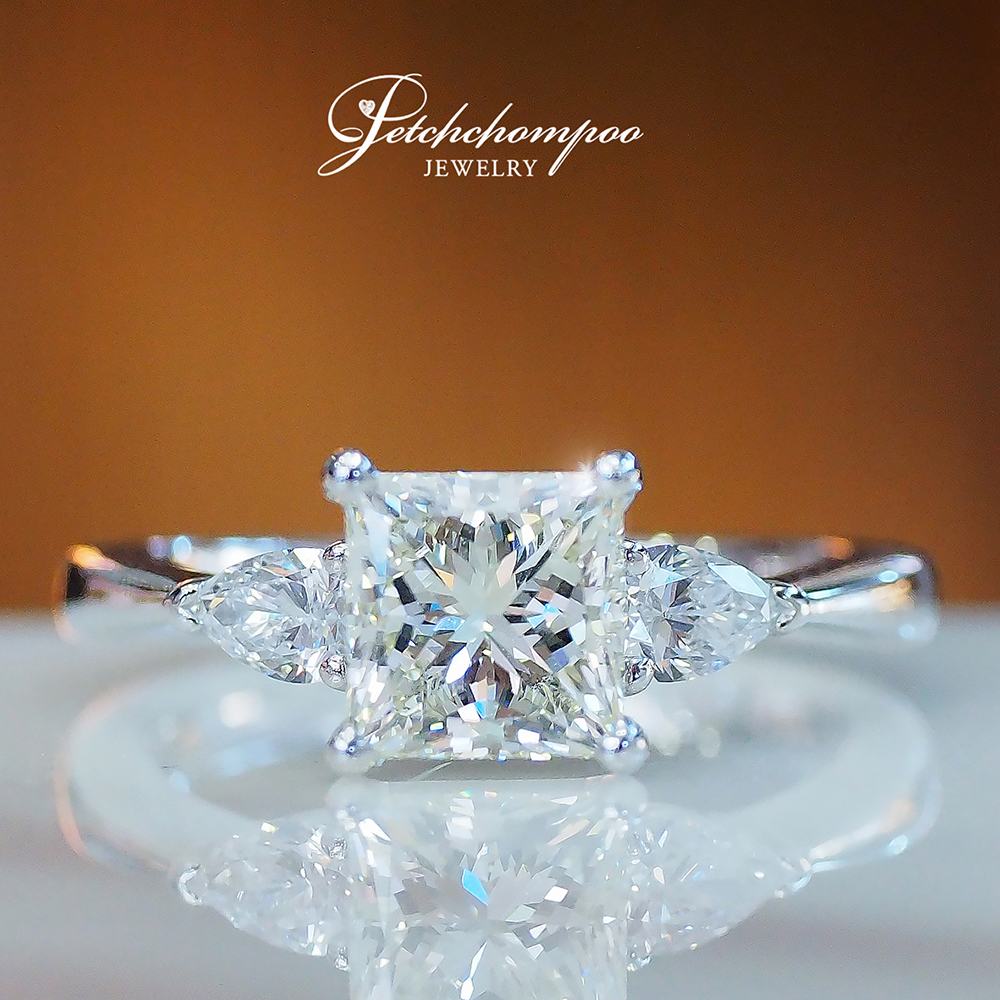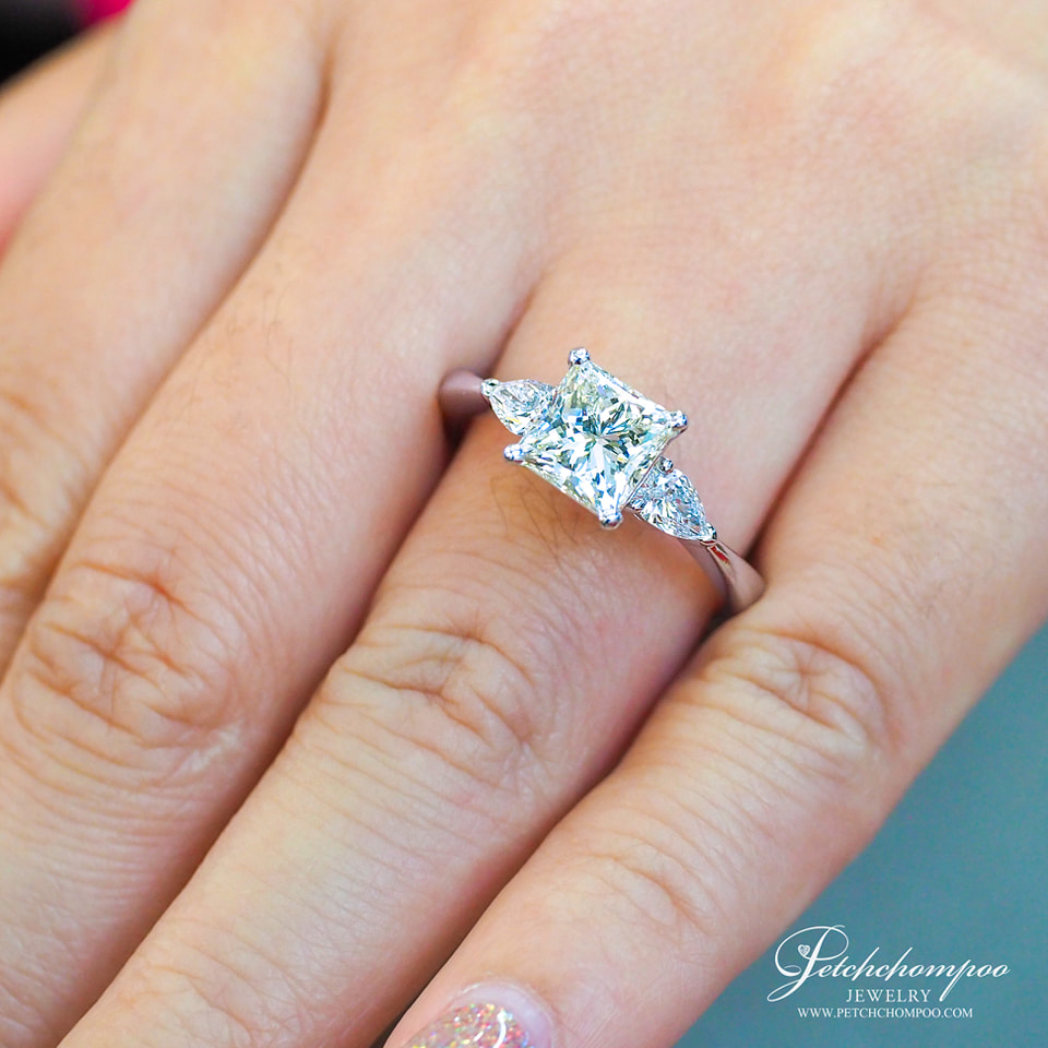 This exquisite 2.11-carat Princess Cut diamond (I / VVS1 / 2EX – HKD certified) is flanked by two pear-shaped diamonds totaling 0.40 carats, set in an elegant 18K white gold band weighing 8.21 grams. A stunning design that blends modern geometry with classic romance — ideal for the woman who commands both strength and grace.