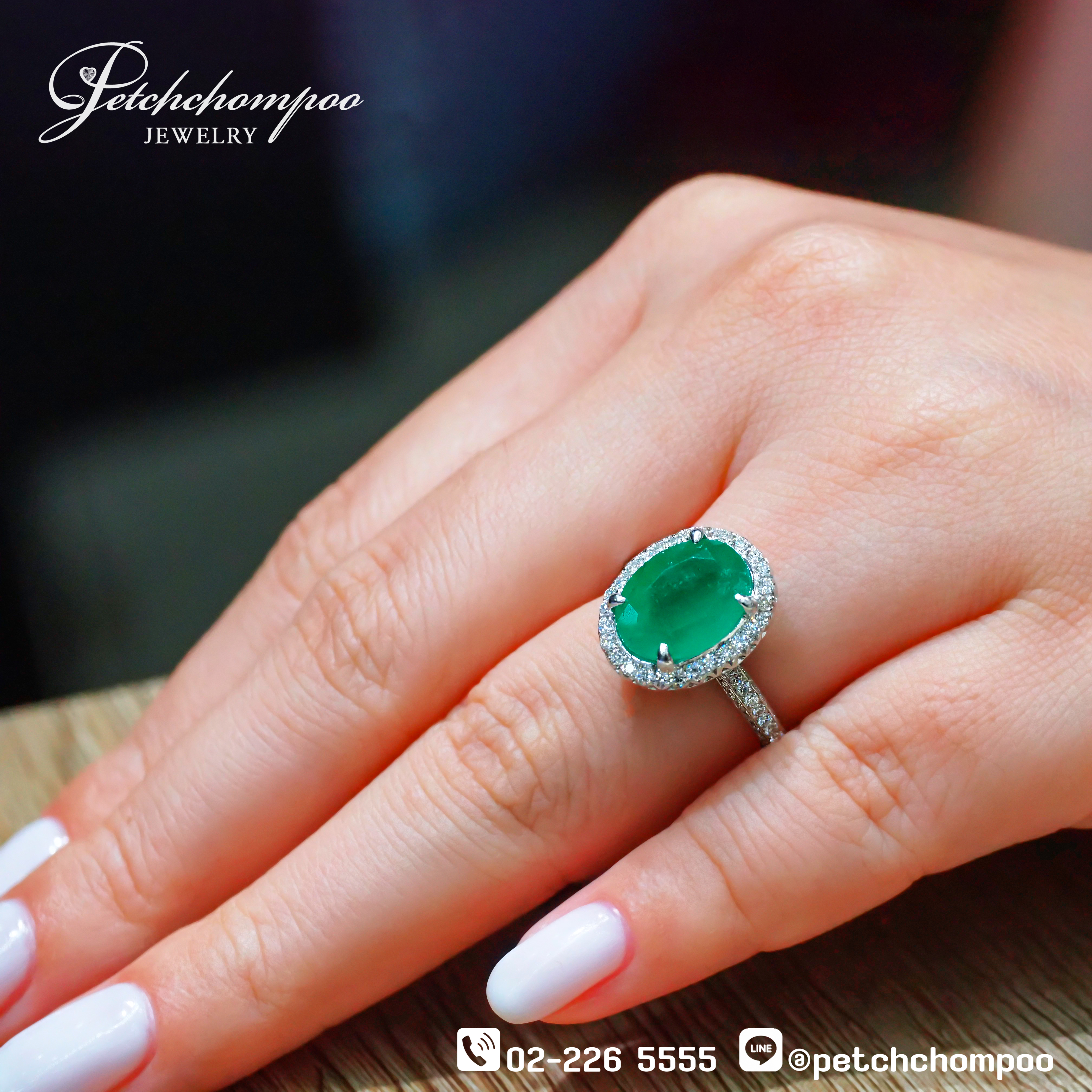 The Emerald Serenity™ ring features a magnificent 4.94-carat Colombian emerald, admired for its rich green hue and natural brilliance. Surrounded by 176 brilliant diamonds totaling 0.87 carats, the halo design enhances the emerald's purity and luminosity. Set in a refined 18K white gold band weighing 6.33 grams, this piece embodies calm sophistication and confident beauty.