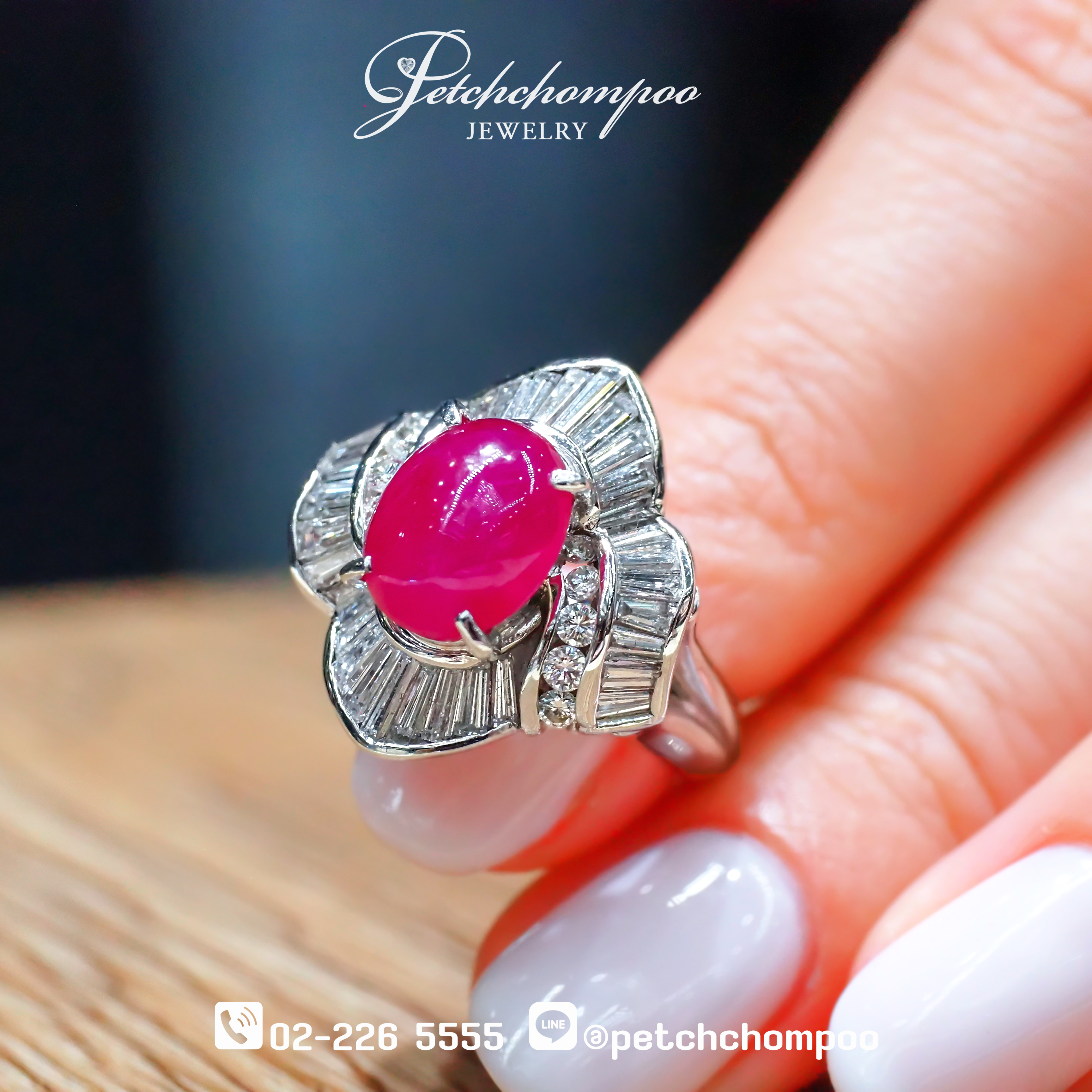► Center Stone: Burmese Ruby (Cabochon) — 4.06 carats