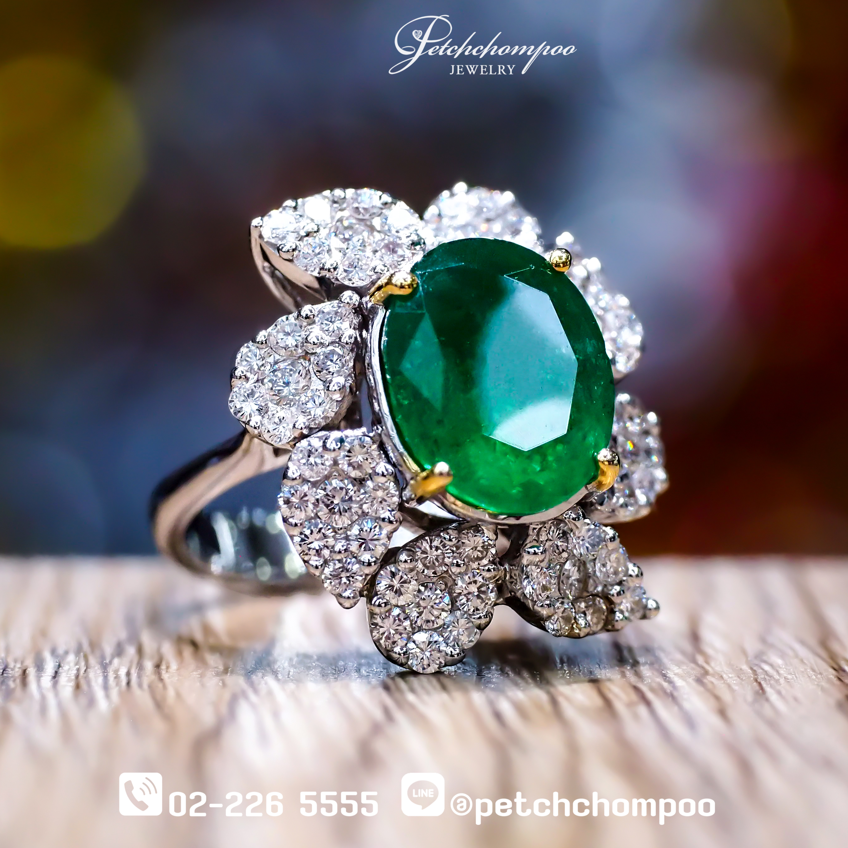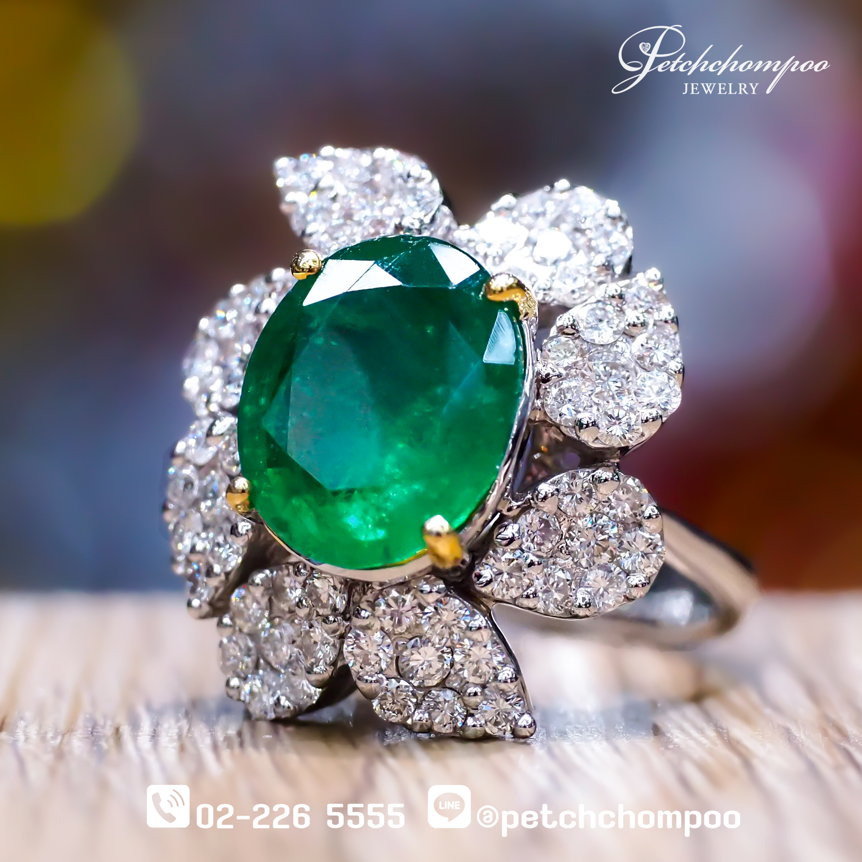 Emerald Blossom Crown™ 5.10 carat Natural Emerald & Diamond Floral Ring