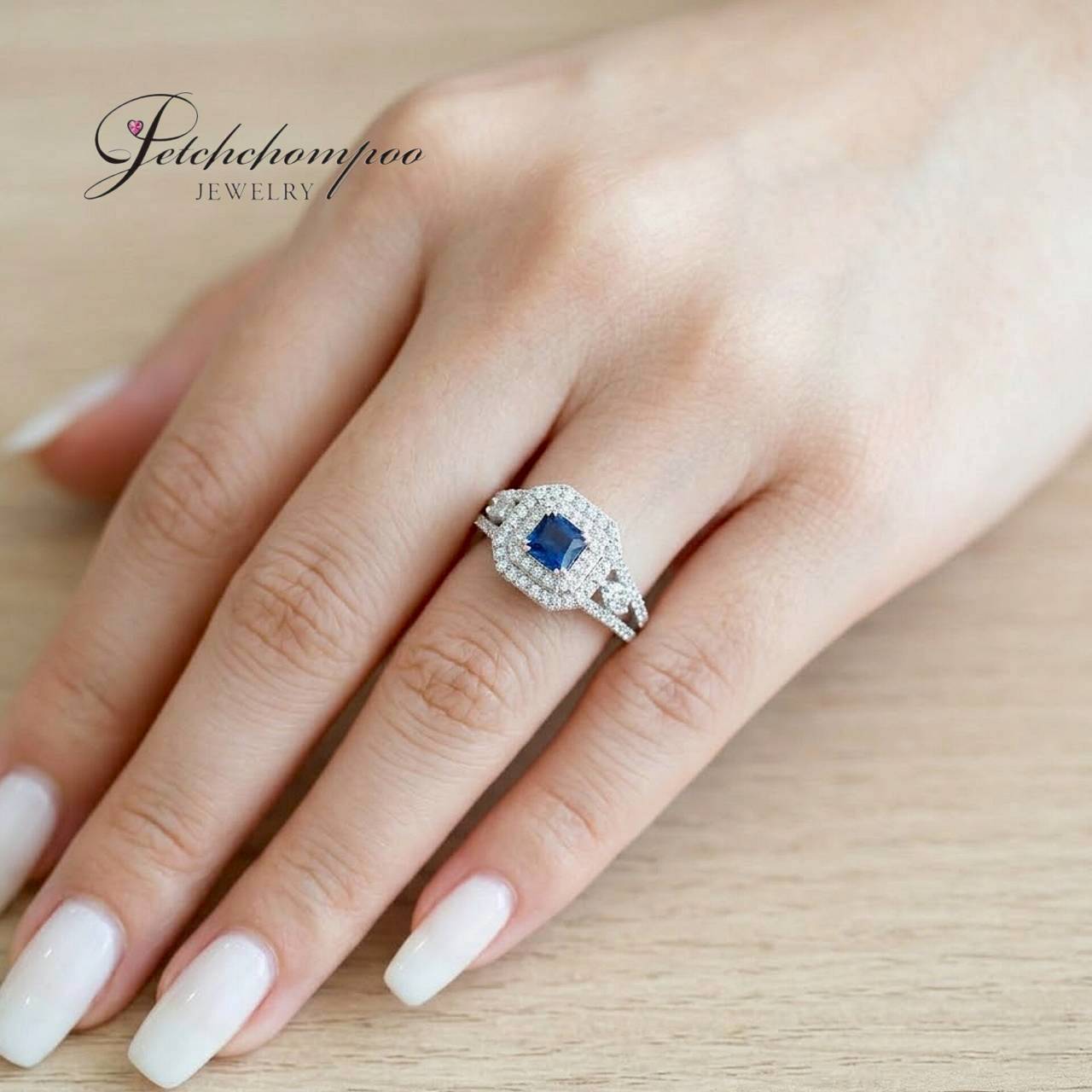 Princess-Cut Sapphire Ring 0.71 Carat with Double Diamond Halo – 78 Stones™
