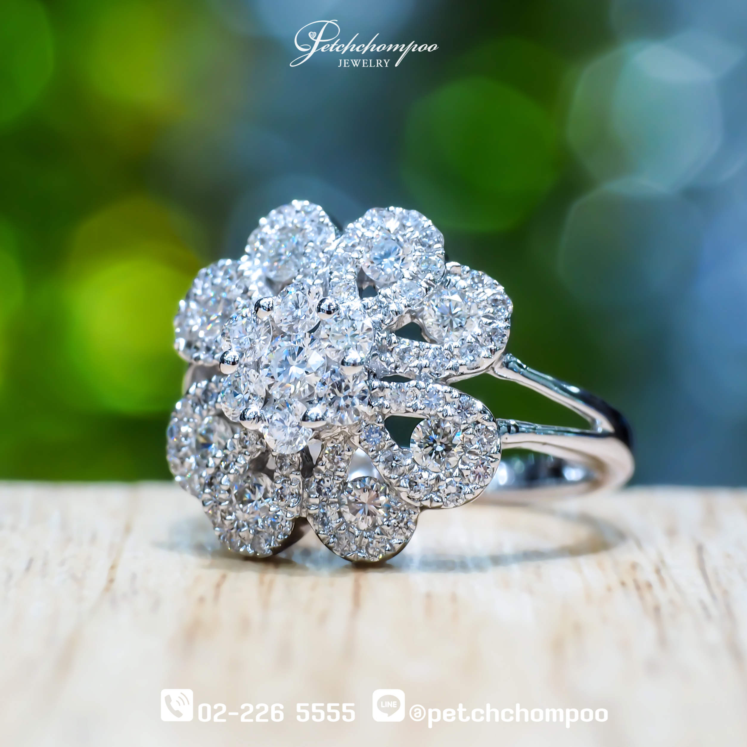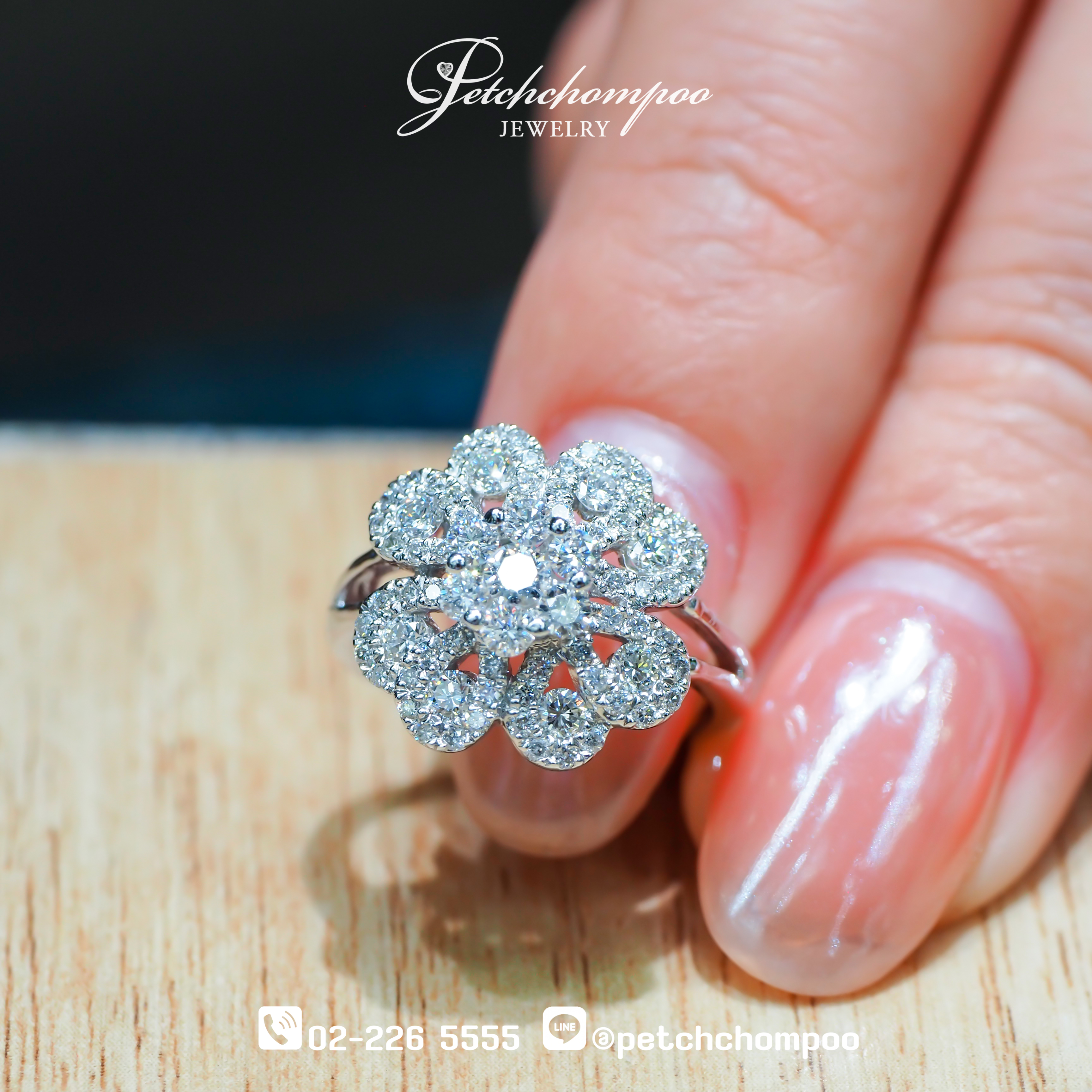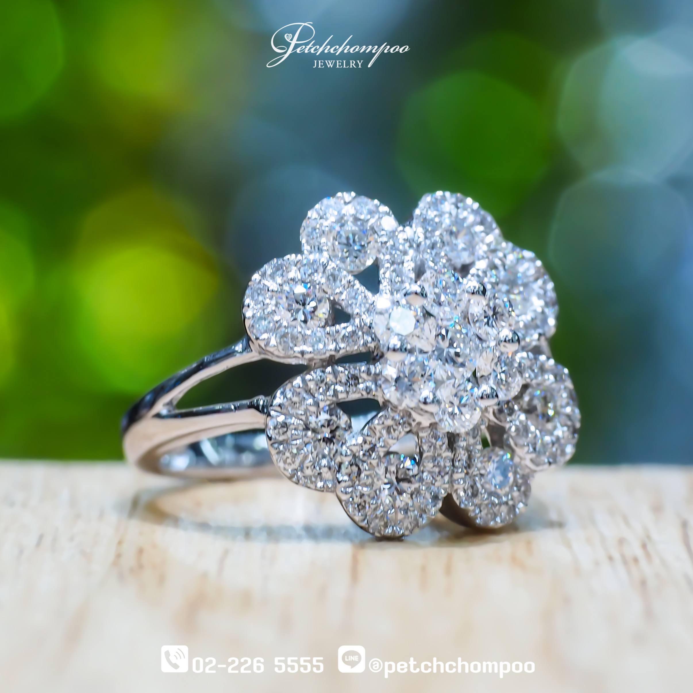 The Blossom Radiance™ diamond ring is adorned with 75 sparkling diamonds, totaling 0.64 carats, intricately arranged in a radiant floral motif. Set in 18K white gold weighing 3.5 grams, this ring combines feminine charm with luxurious brilliance, making it the perfect statement of grace and sophistication.