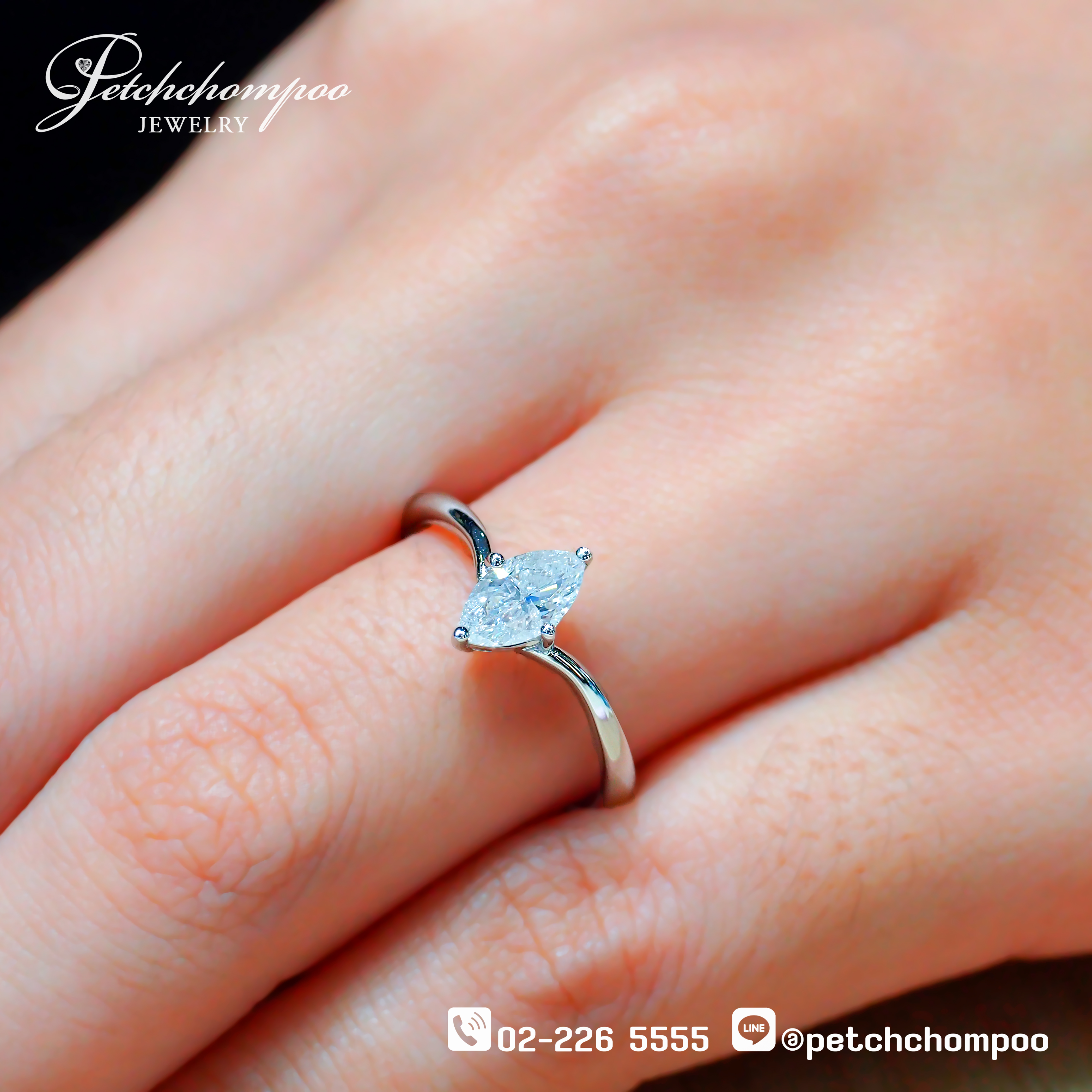 The Eternal Grace™ ring embodies refined elegance and romantic minimalism. Set with a 0.60-carat Marquise Cut diamond, gracefully mounted on a delicate 18K white gold band (1.92 grams), this piece elongates the finger with brilliance and sophistication.