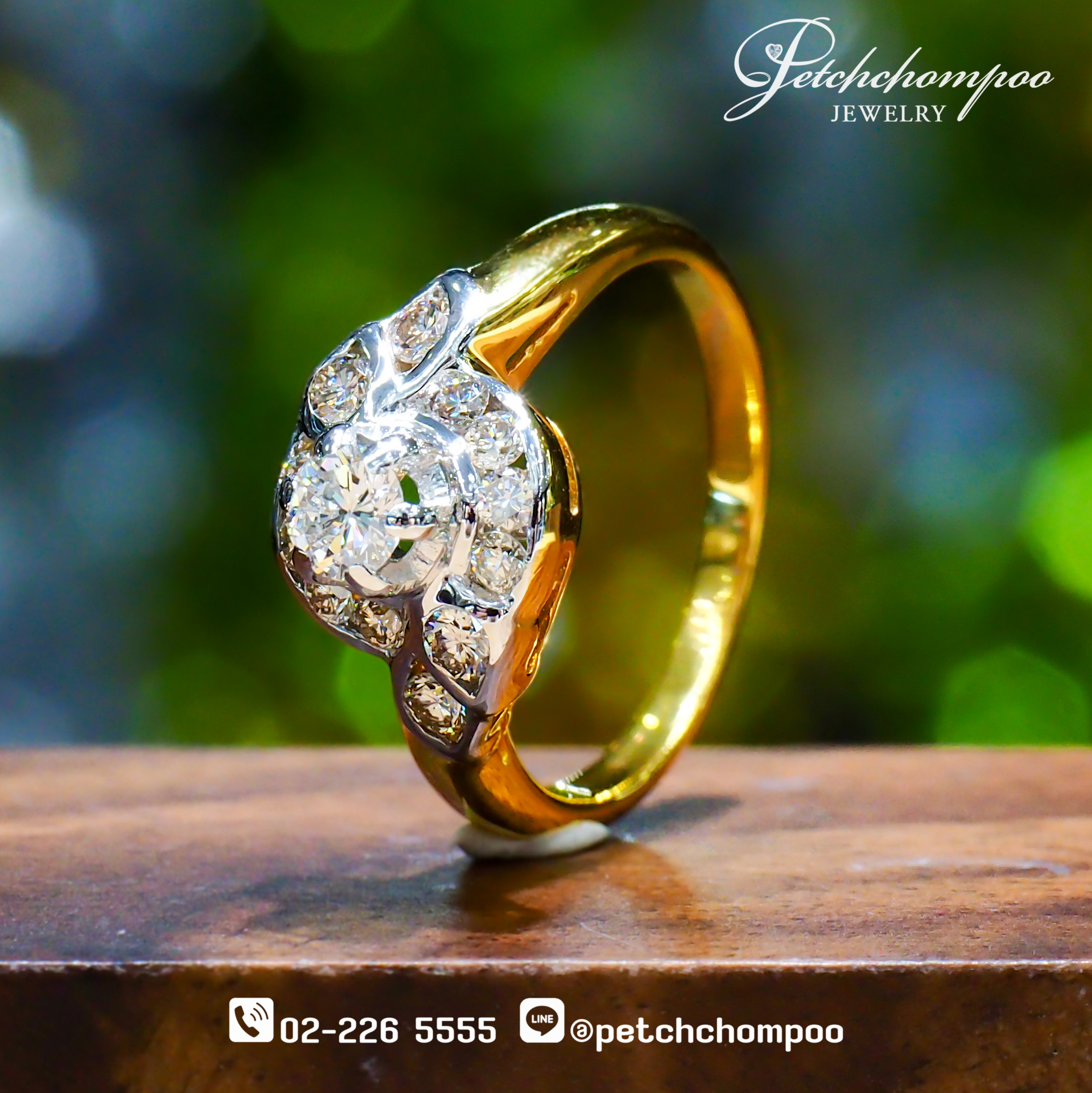 The Twilight Blossom™ ring captures the gentle elegance of a blooming flower. Featuring a 0.10-carat center diamond, surrounded by accent stones of 0.20 cts (4 pcs) and 0.16 cts (8 pcs) — totaling 0.46 carats, all beautifully set in 18K gold (3.11 grams).
