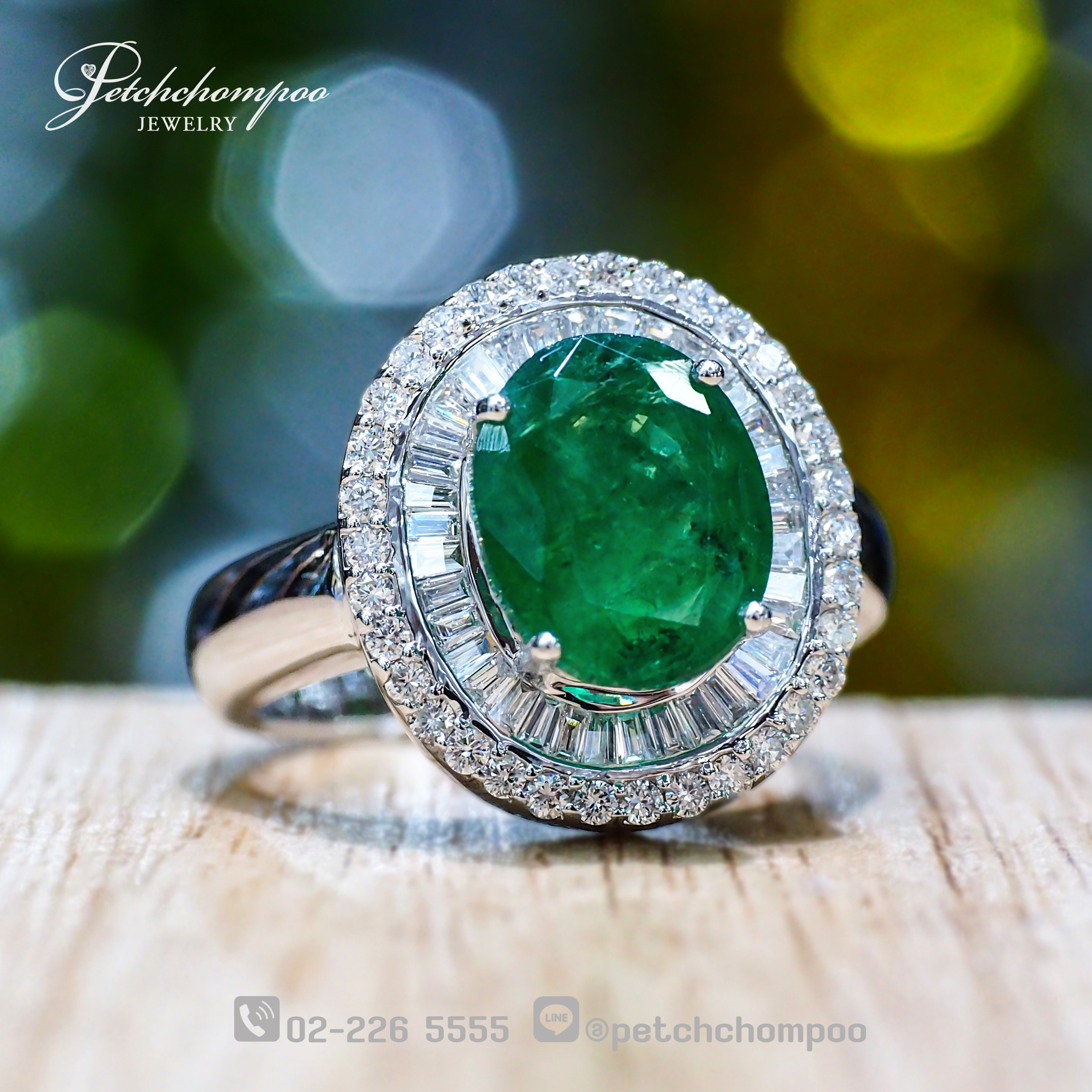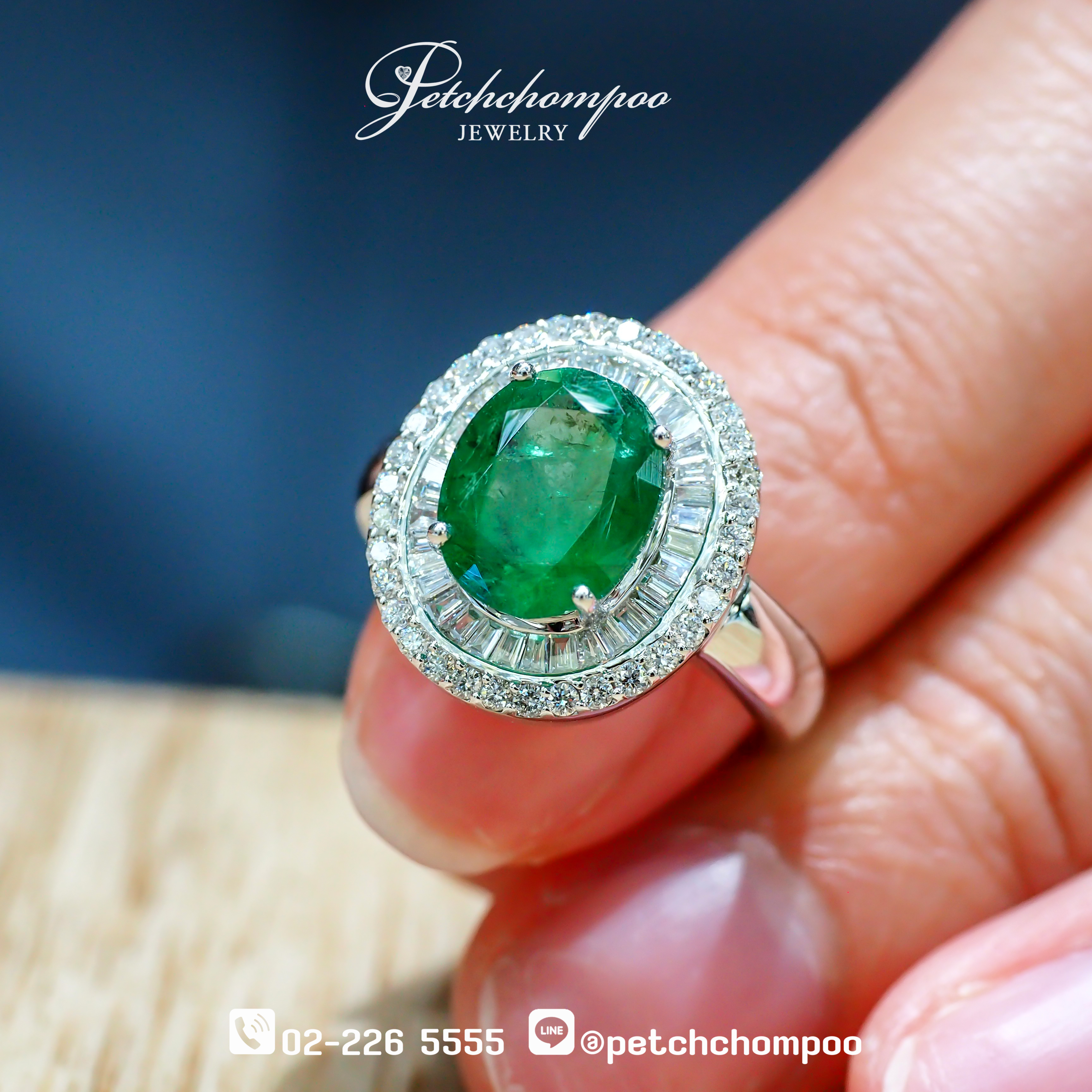 The Emerald Aurora Halo ring features a stunning 2.57-carat Zambian Emerald, celebrated for its rich forest-green hue and naturally radiant clarity. This exquisite centerpiece is illuminated by a dual-layer halo —