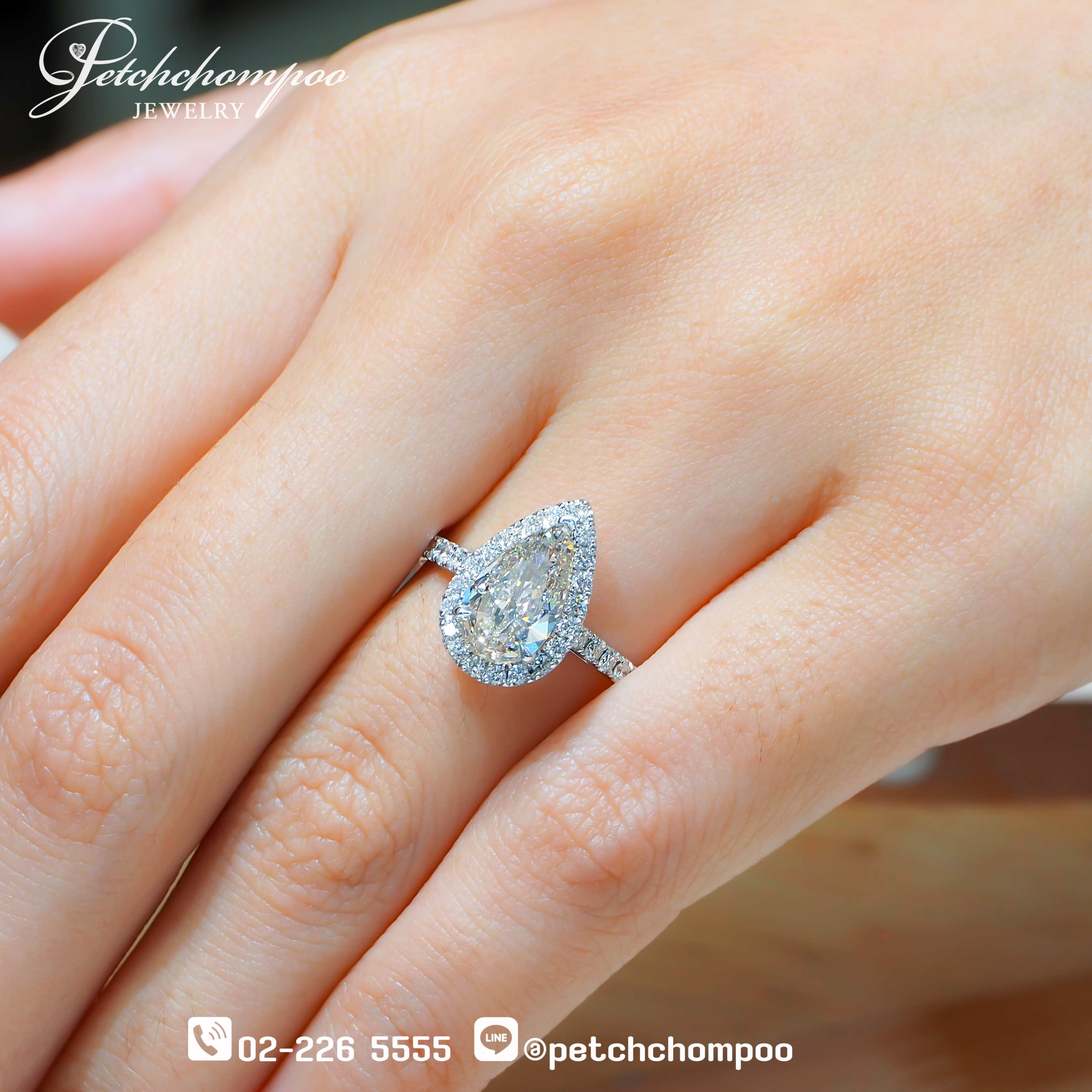 This elegant ring features a 1.51-carat pear-shaped diamond, graded K color, IF clarity, certified by IGI.