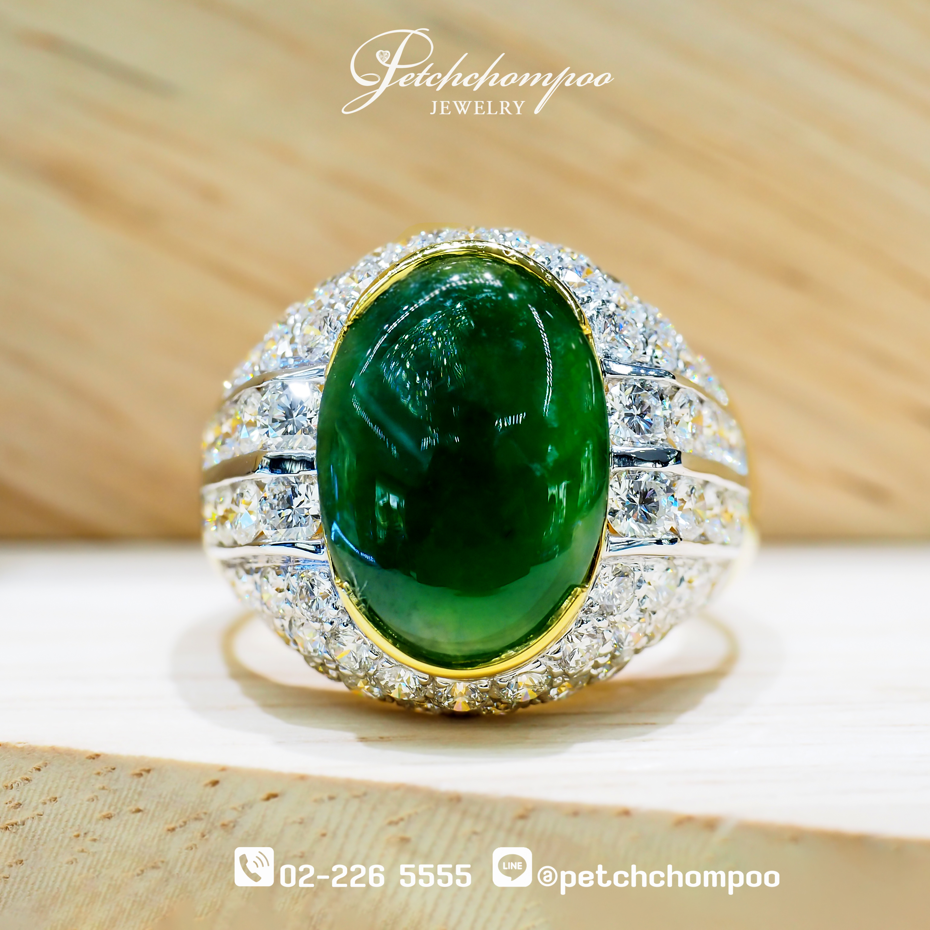 Featuring a magnificent 5.12-carat Natural Burmese Jadeite Type A, celebrated for its authentic untreated purity and deep, luminous green tone. Accented with 62 natural diamonds totaling 2.70 carats, meticulously arranged along the sides and pavé structure, the design balances strength and refined brilliance. Crafted in gold weighing 13.24 grams, this imperial statement ring embodies heritage, prestige, and timeless wealth ⇒ A collector’s piece destined to be passed through generations.