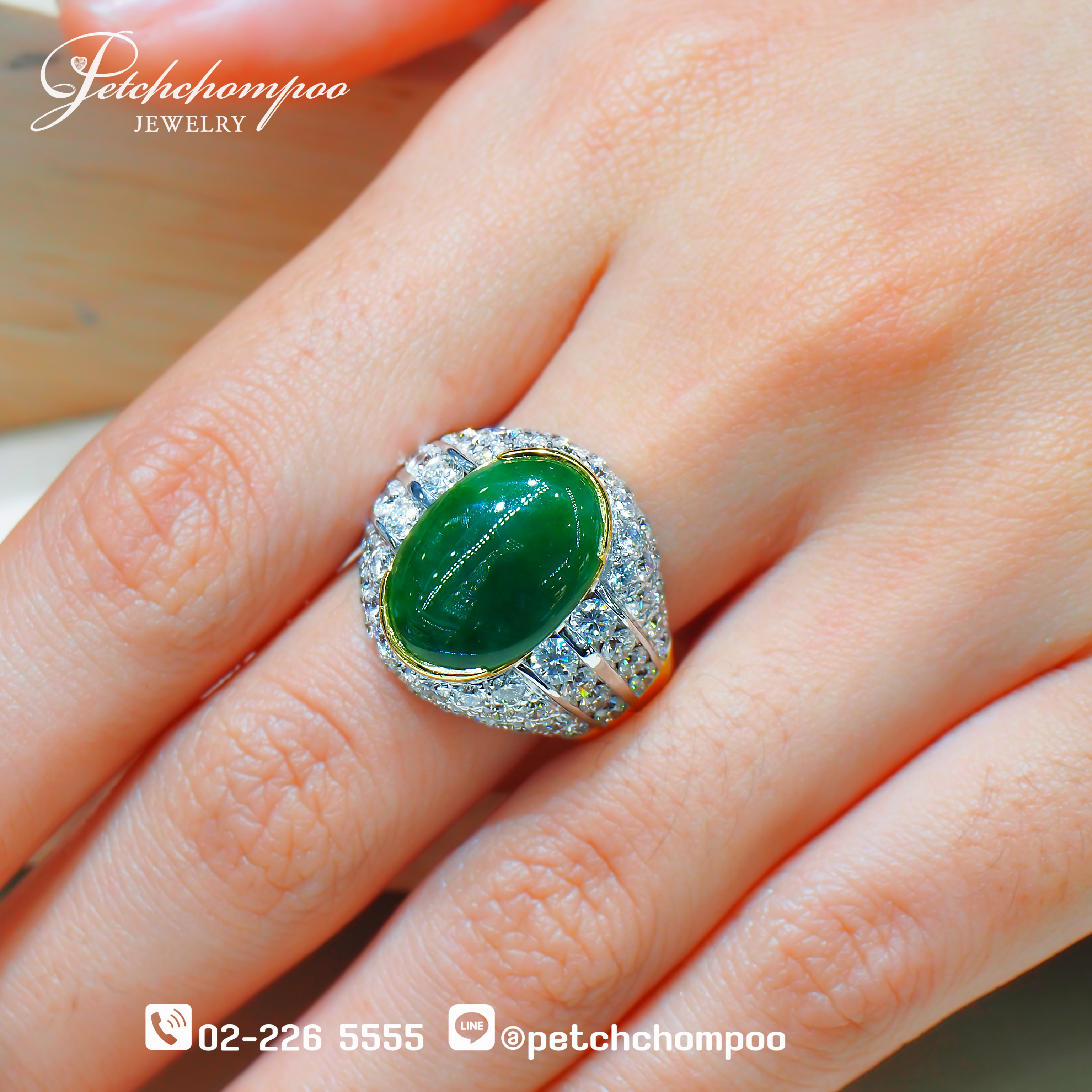 Genuine Burmese Jade Ring, Type A Imperial Jade Legacy, 5.42 carats, surrounded by diamonds | Emil