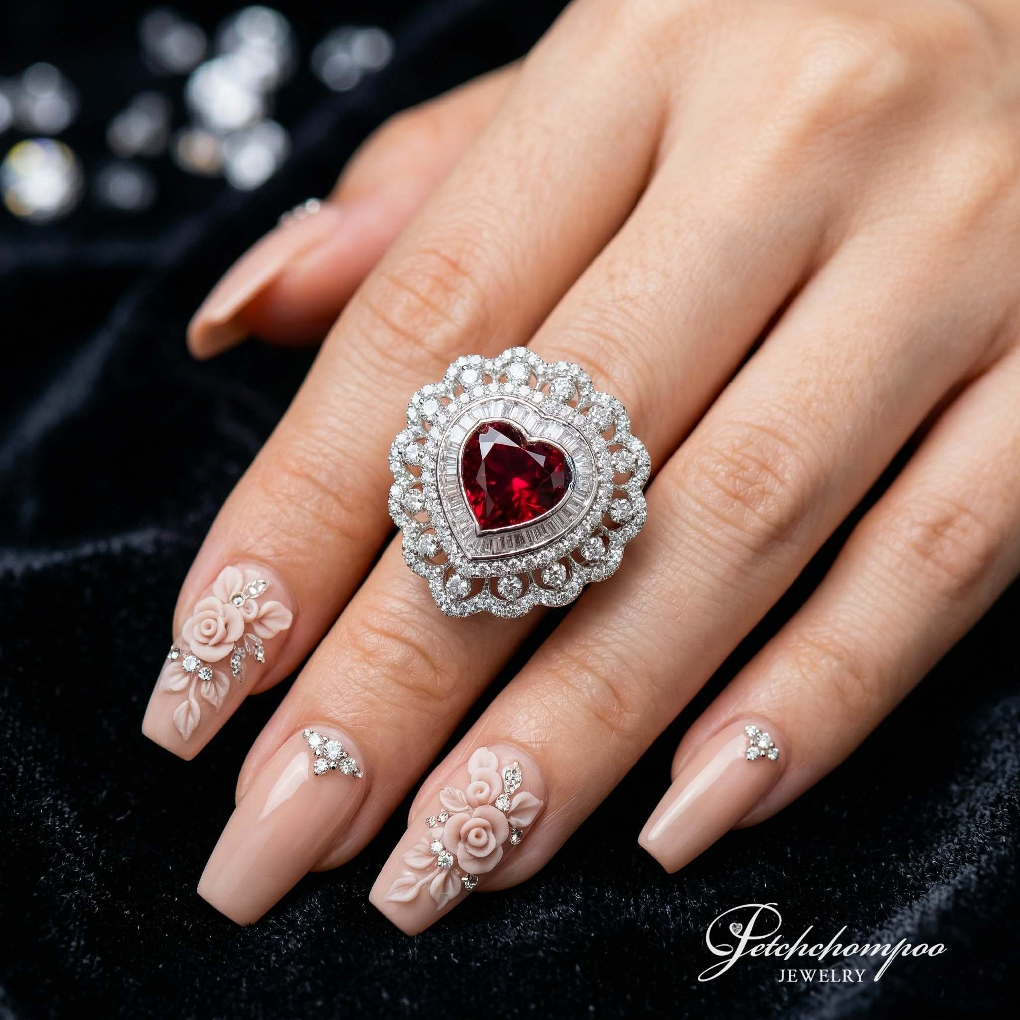 Crimson Heart Royale 5.50 carat heart-shaped garnet ring,with diamonds