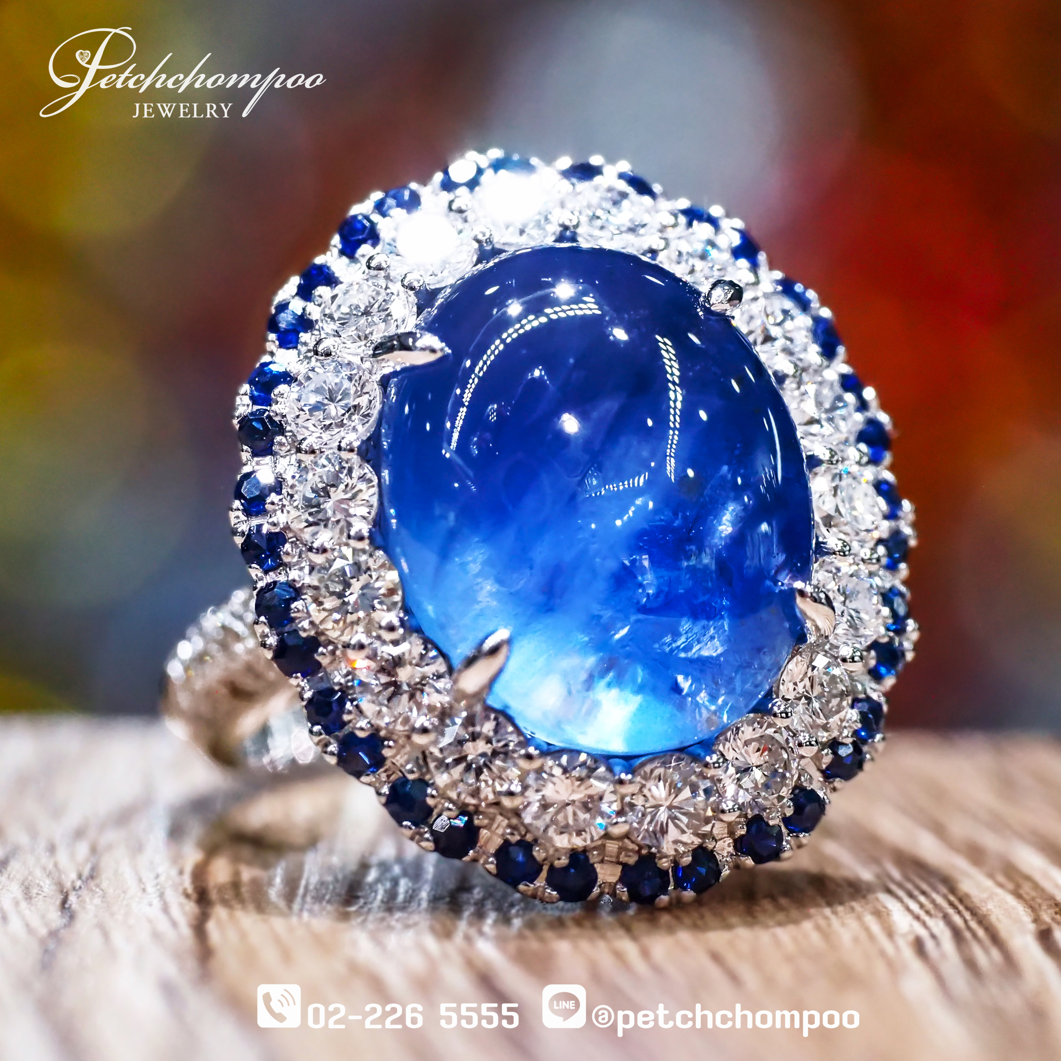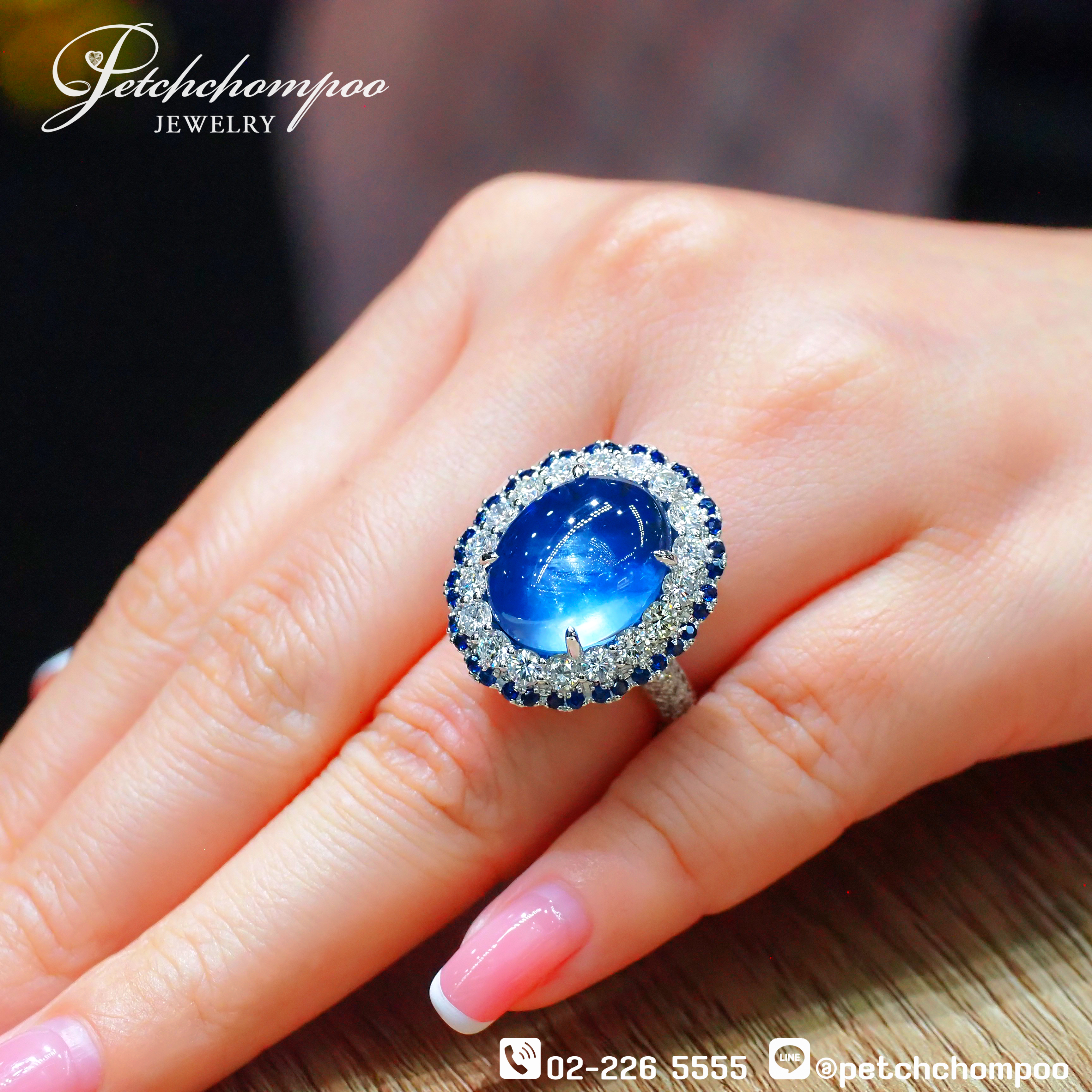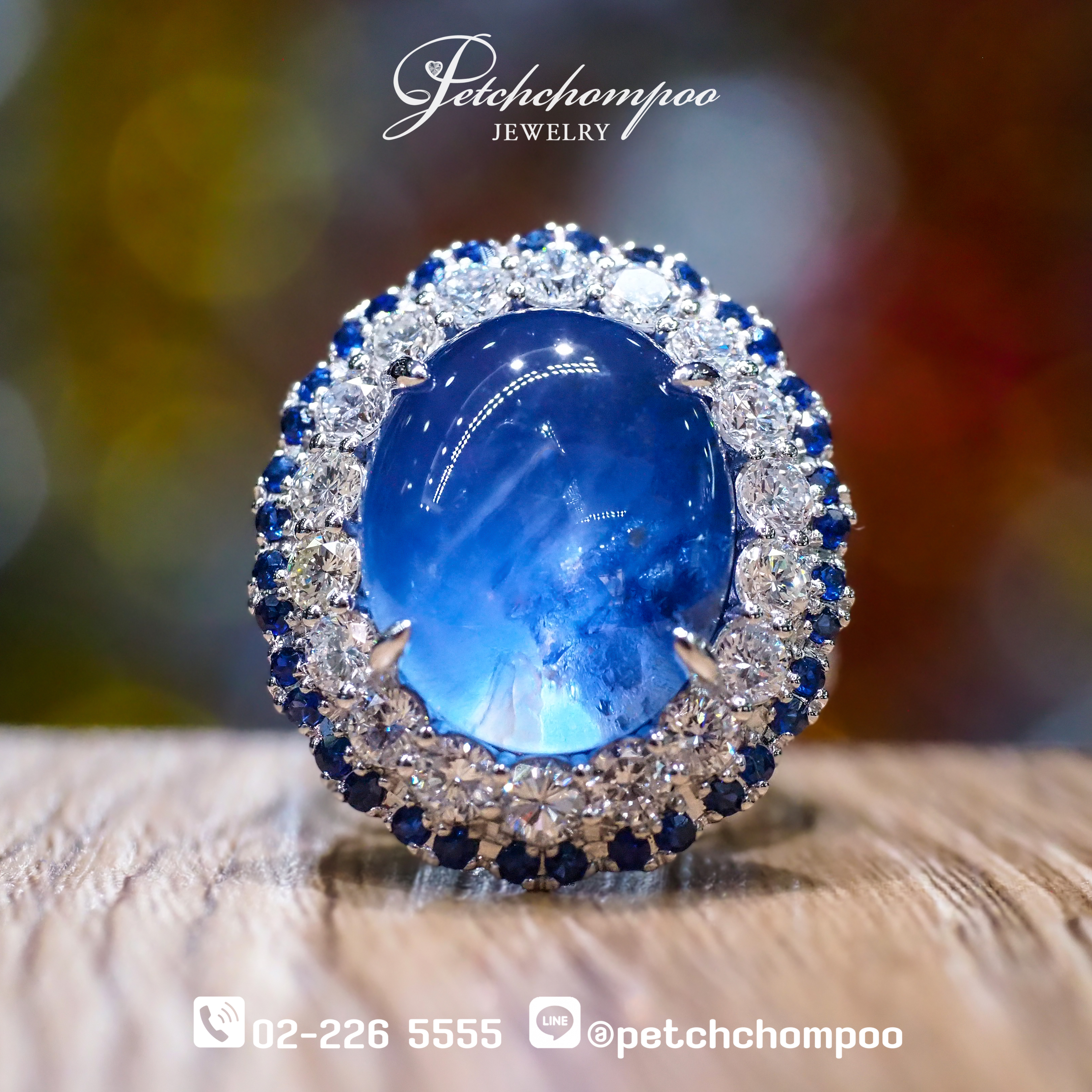 Ceylon Star Sapphire Ring 21.62 Carats with Diamond & Sapphire Halo™ – AIGS Certified