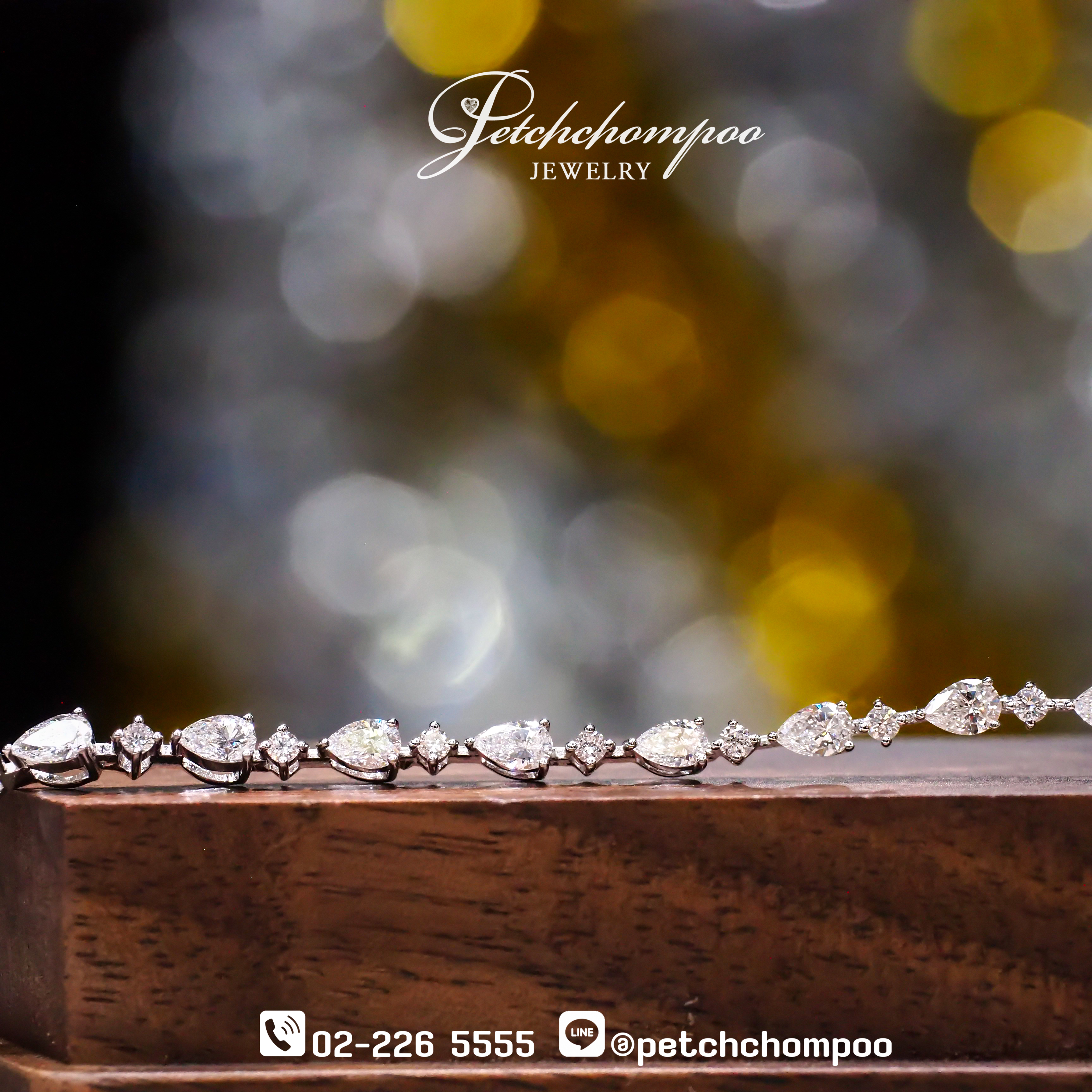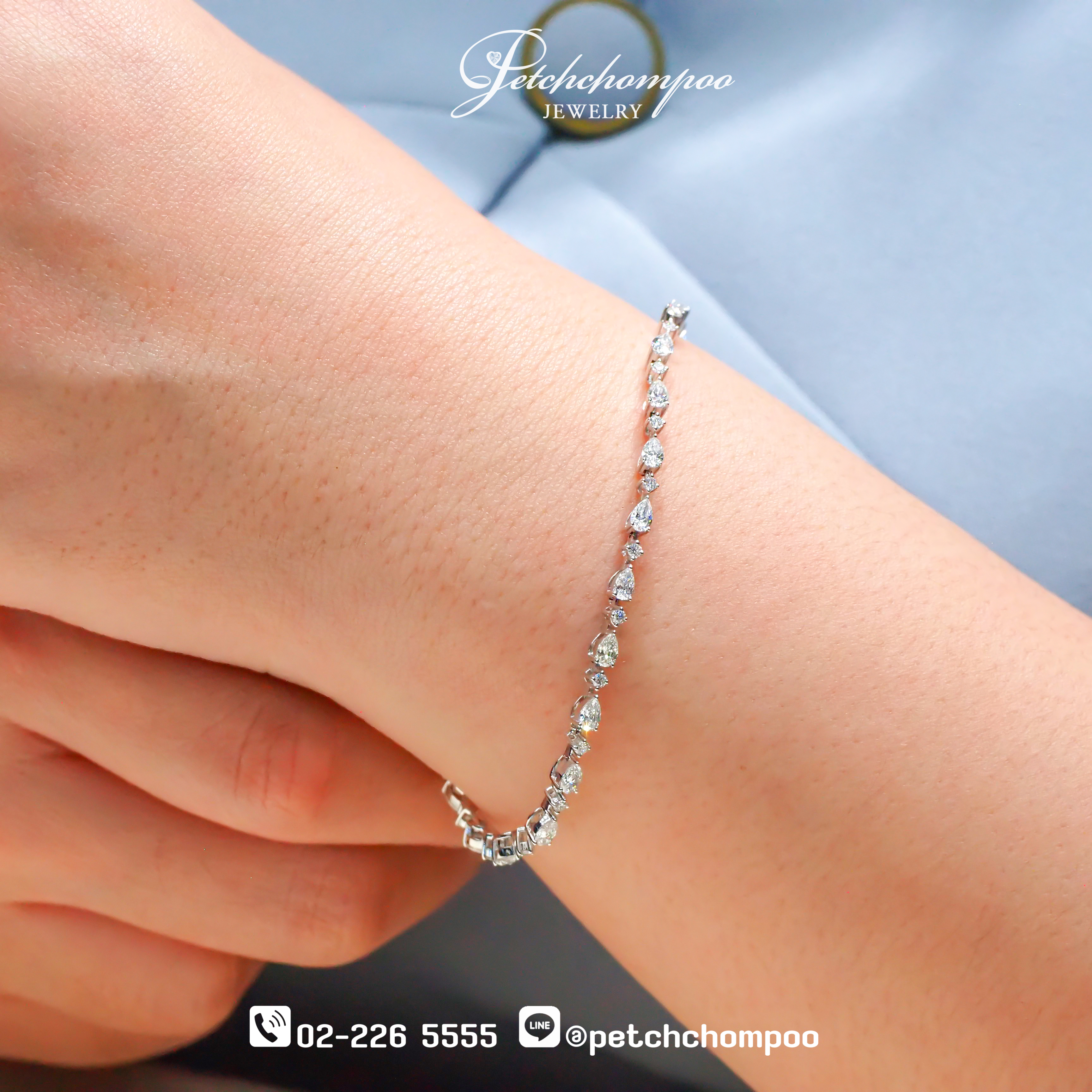 สร้อยข้อมือเพชรดีไซน์พิเศษ สะกดสายตาด้วยเพชรทรงหยดน้ำจำนวน 44 เม็ด รวม 2.29 กะรัต จัดเรียงอย่างกลมกลืนกับเพชรทรงกลมขนาดเล็ก เสมือนสายหยดน้ำที่ไหลรินอย่างต่อเนื่อง บนตัวเรือนทองคำขาว 18K น้ำหนัก 6.57 กรัม เรียบหรู แวววาวทุกองศา เหมาะสำหรับผู้หญิงที่หลงใหลในความอ่อนหวานและสง่างามในแบบไม่ซ้ำใคร