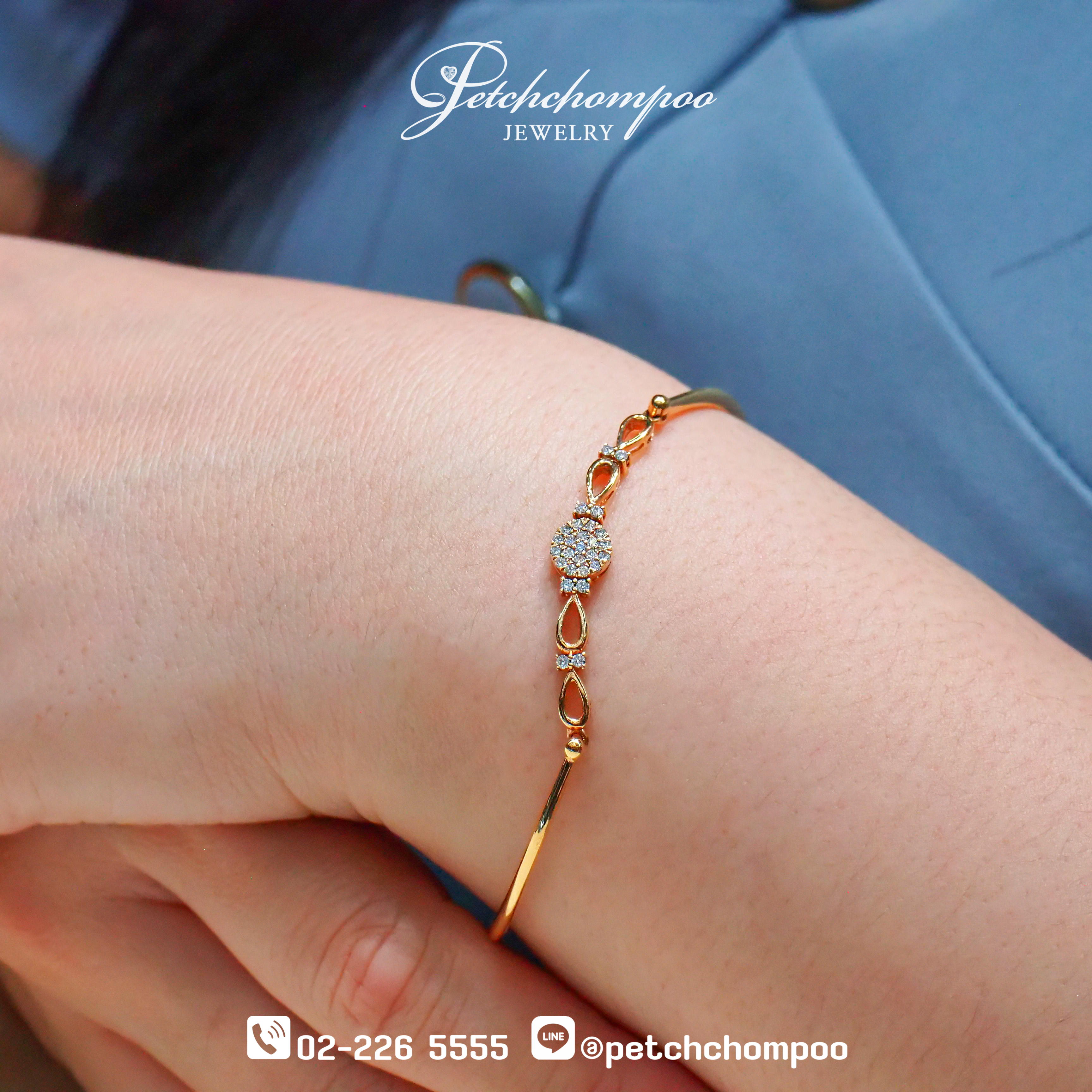 ดีไซน์ที่ได้รับแรงบันดาลใจจาก “กลีบดอกไม้ที่โอบล้อมแสงดาว” กำไลเส้นบางดูเรียบหรู ตรงกลางประดับเพชรทรงกลมเรียงแน่นภายในกรอบวงกลมทองคำแท้ 18K สองข้างตกแต่งด้วยลวดลายหยดน้ำอ่อนช้อยเชื่อมต่อด้วยเพชรเม็ดเดี่ยว เสริมให้ทุกจังหวะการเคลื่อนไหวของคุณเปล่งประกายแบบไม่ต้องพยายาม เหมาะทั้งใส่คนเดียวหรือจับคู่เป็นเลเยอร์กับเครื่องประดับอื่นได้อย่างลงตัว