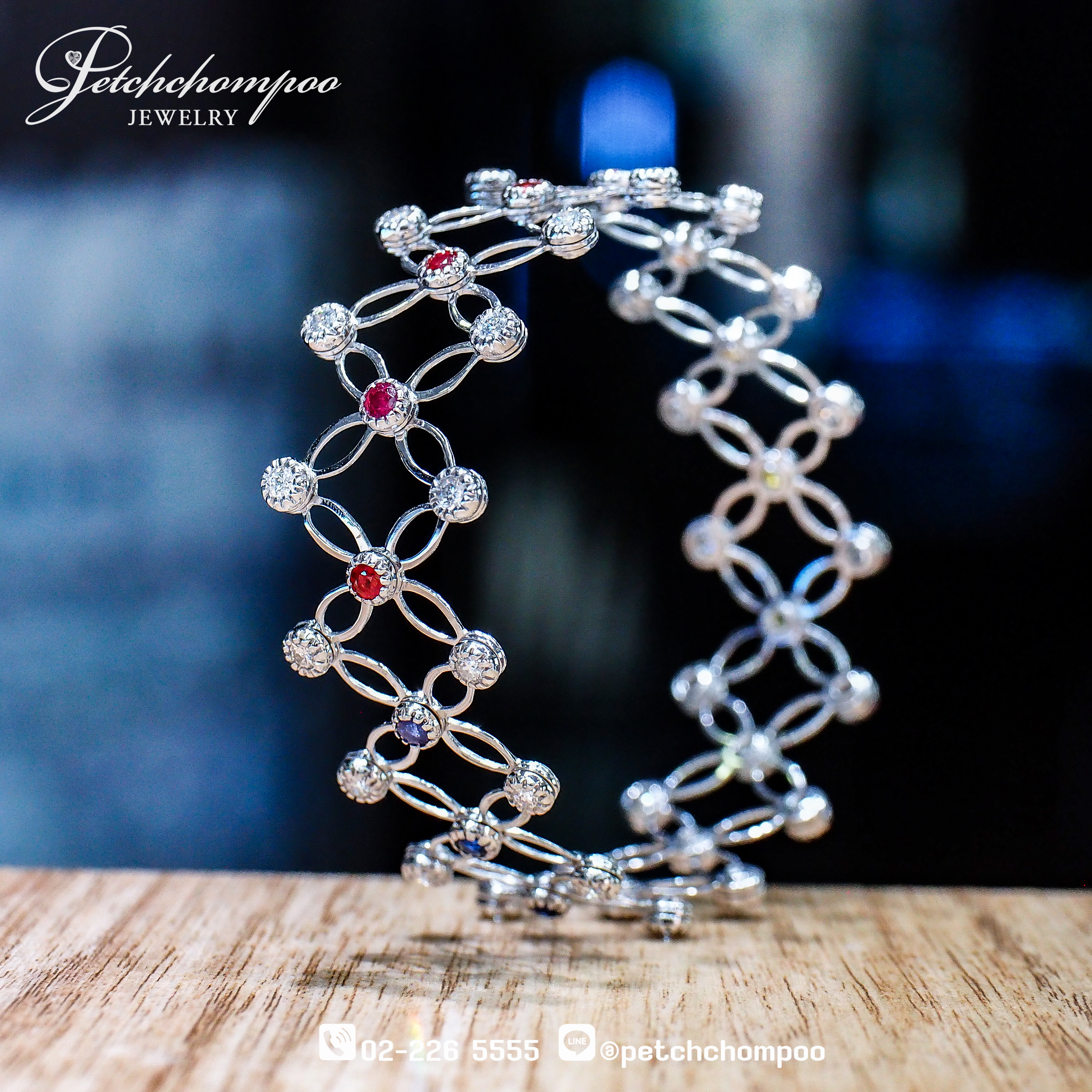 FlexiBloom Radiant Duo คือกำไลเพชรดีไซน์พิเศษที่สามารถ ปรับยืด–หดได้ เพื่อใช้งานได้ทั้งแบบ กำไลข้อมือ และ แหวน ในชิ้นเดียว โดยคอนเซปต์ลายคล้องวงซ้อนกันอย่างประณีต ประดับด้วย เพชรแท้รวม 1.50 กะรัต จำนวน 30 เม็ด เผยประกายระยิบระยับทุกองศา งานออกแบบโปร่งดูทันสมัย สวมใส่ง่าย น้ำหนักเบา แต่ยังคงความหรูหราด้วยตัวเรือนทองคำขาว 21.33 กรัม สร้างเอกลักษณ์ที่แตกต่างและโดดเด่นไม่เหมือนใคร