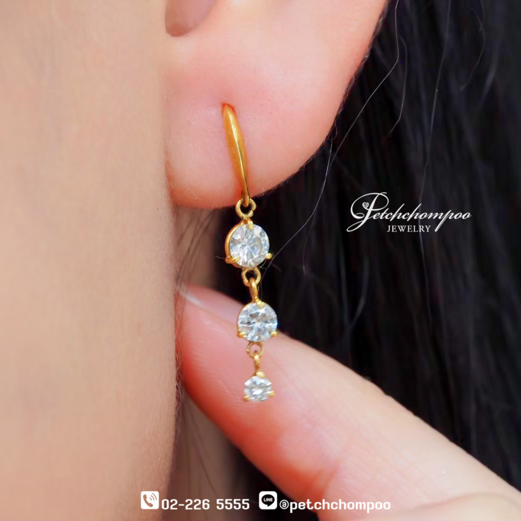 ต่างหู Golden Cascade™ ถ่ายทอดความงามเรียบแต่หรูผ่านดีไซน์แบบ linear drop ที่เรียงเพชรแท้ 3 เม็ดต่อข้างอย่างสมดุล รวมทั้งหมด 6 เม็ด น้ำหนักรวม 1.00 กะรัต ให้ประกายระยิบระยับในทุกการเคลื่อนไหว ตัวเรือนทองคำ 18K น้ำหนัก 1.30 กรัม โค้งรับใบหูอย่างสง่างาม เสริมบุคลิกให้ดูอ่อนหวานแต่ทรงพลัง เหมาะสำหรับสวมใส่ได้ทั้งในวันทำงานและงานราตรี — เรียบหรูแบบหญิงมั่นที่ไม่ต้องพยายามมากก็สวยจับตาได้เสมอ