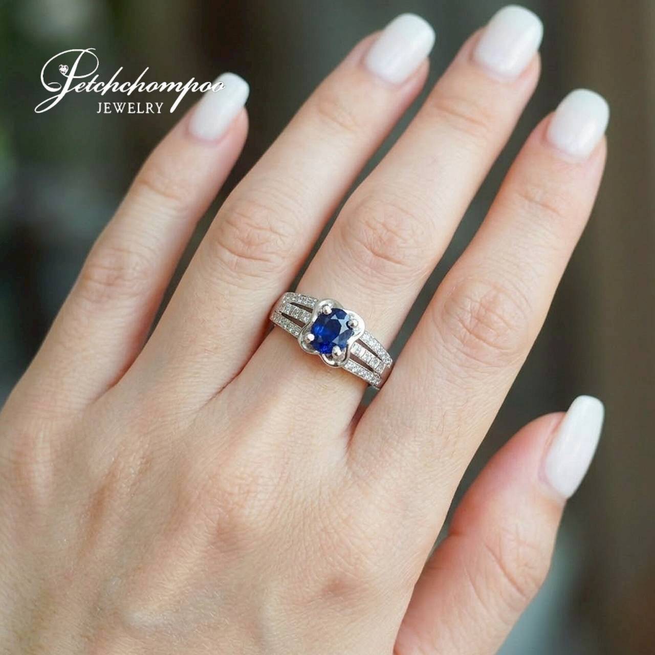 แหวนไพลินแท้ 1.32 กะรัต ล้อมเพชร