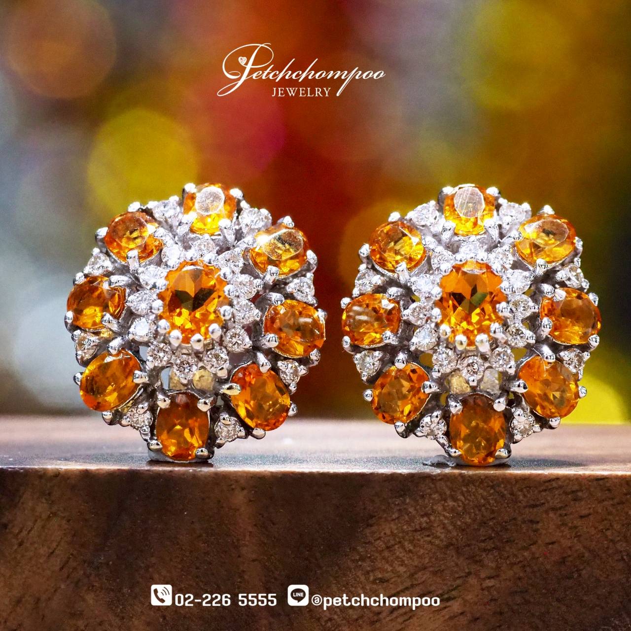 Citrine Radiant Bloom™ โดดเด่นด้วยการจัดเรียง ซิทรินเจียระไนทรงกลมรี 18 เม็ด รวม 2.98 กะรัต เปล่งประกายสีส้มสดใส อันเป็นเอกลักษณ์ของอัญมณีแห่งพลังงานบวก โอบล้อมด้วย เพชร 40 เม็ด น้ำหนักรวม 0.51 กะรัต ที่เปล่งประกายวิบวับอย่างหรูหรา ตัวเรือนทองคำขาวหนัก 7.68 กรัม สะท้อนความประณีตและสง่างามในทุกมุมมอง เหมาะสำหรับสุภาพสตรีที่ต้องการเพิ่มความสดใสและเสน่ห์ในทุกโอกาส ⇒ งามสง่าดุจบุปผาที่เปล่งรัศมีเหนือกาลเวลา
