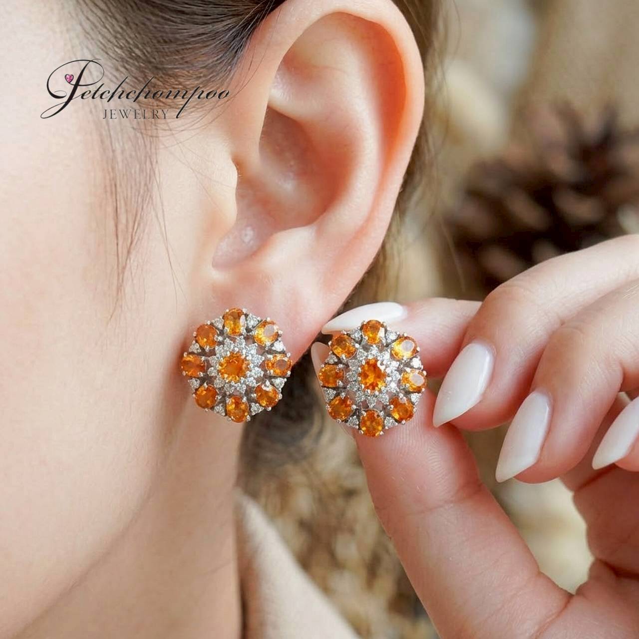 ต่างหูซิทริน Citrine Radiant Bloom™ ล้อมเพชร