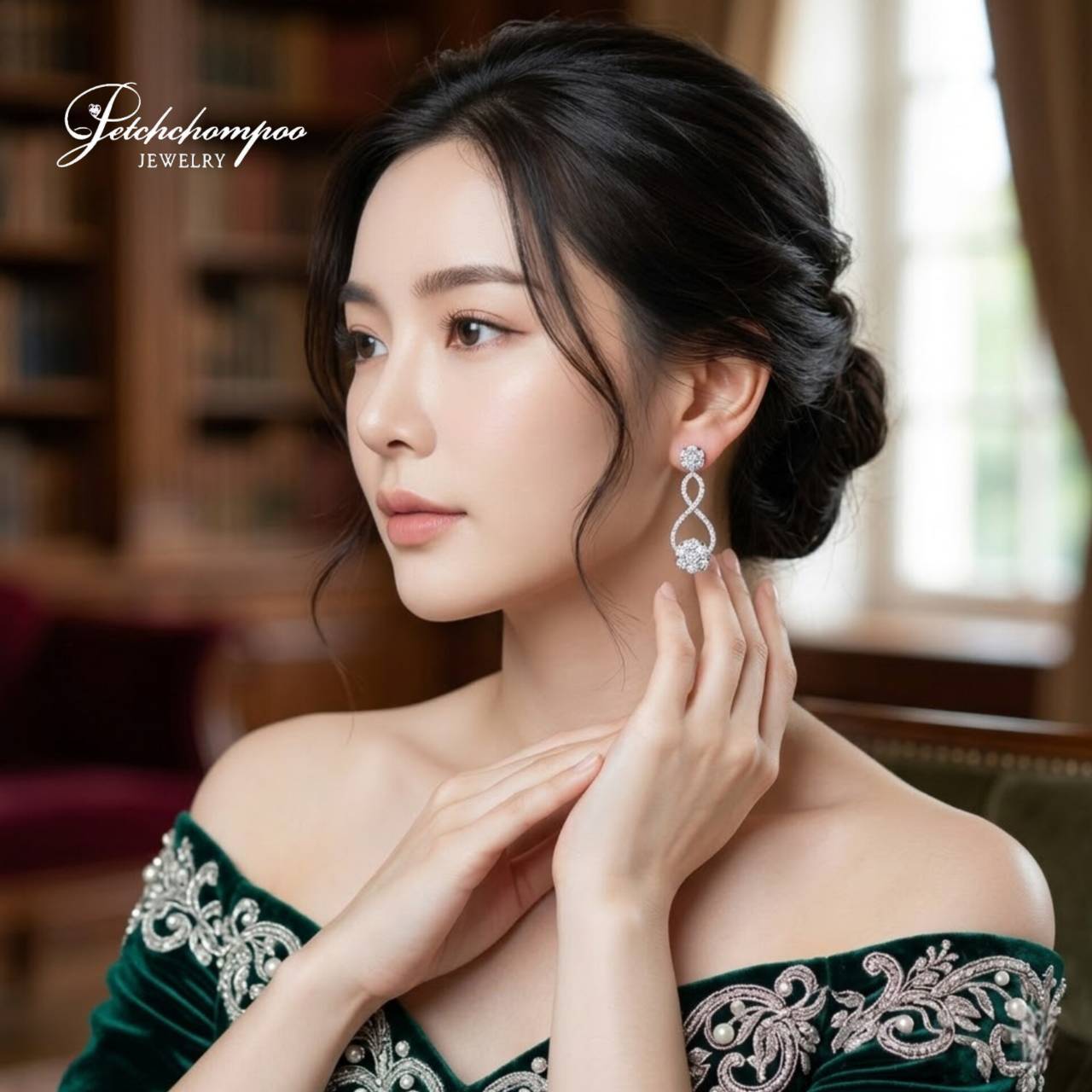 ต่างหู Infinity Bloom™ ออกแบบในรูปทรงอินฟินิตี้ อันเป็นสัญลักษณ์แห่งความไม่มีที่สิ้นสุด ผสมผสานความอ่อนช้อยของดอกไม้เพชรที่เปล่งประกายระยิบระยับ เพชรน้ำงามรวม 2.30 กะรัต จำนวน 86 เม็ด จัดเรียงอย่างวิจิตรในดีไซน์ที่ดูทันสมัยแต่ยังคงคลาสสิกเหนือกาลเวลา ตัวเรือนทองคำขาว 18K น้ำหนัก 5.43 กรัม เติมเต็มทุกลุคด้วยความสง่างามไร้ที่ติ